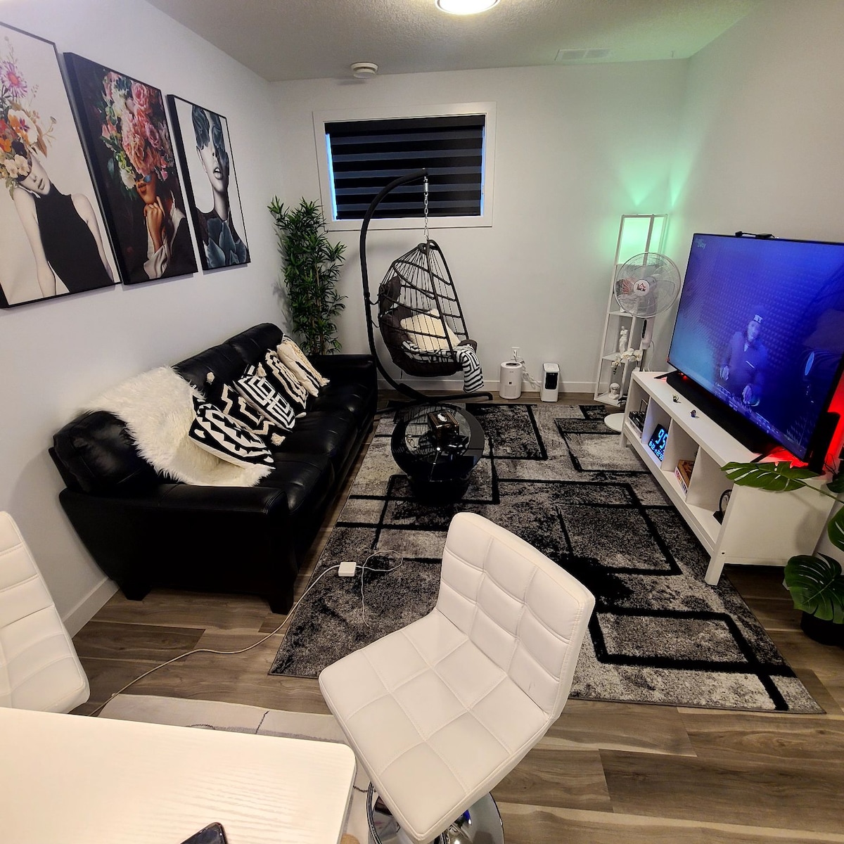 Cozy Cove ofrece una espaciosa suite en el sótano de 2 dormitorios en la tranquila comunidad de Trumpeter by Big Lake. A pocos minutos del centro comercial West Edmonton Mall, disfruta de fácil acceso a tiendas, restaurantes y entretenimiento. La suite cuenta con una acogedora distribución de camas, baño completo, lavandería en la suite, wifi de alta velocidad y TV inteligente. Con una entrada privada, llegada autónoma y refrigerios de cortesía, es el hogar perfecto lejos de casa para familias, parejas y viajeros solitarios.
