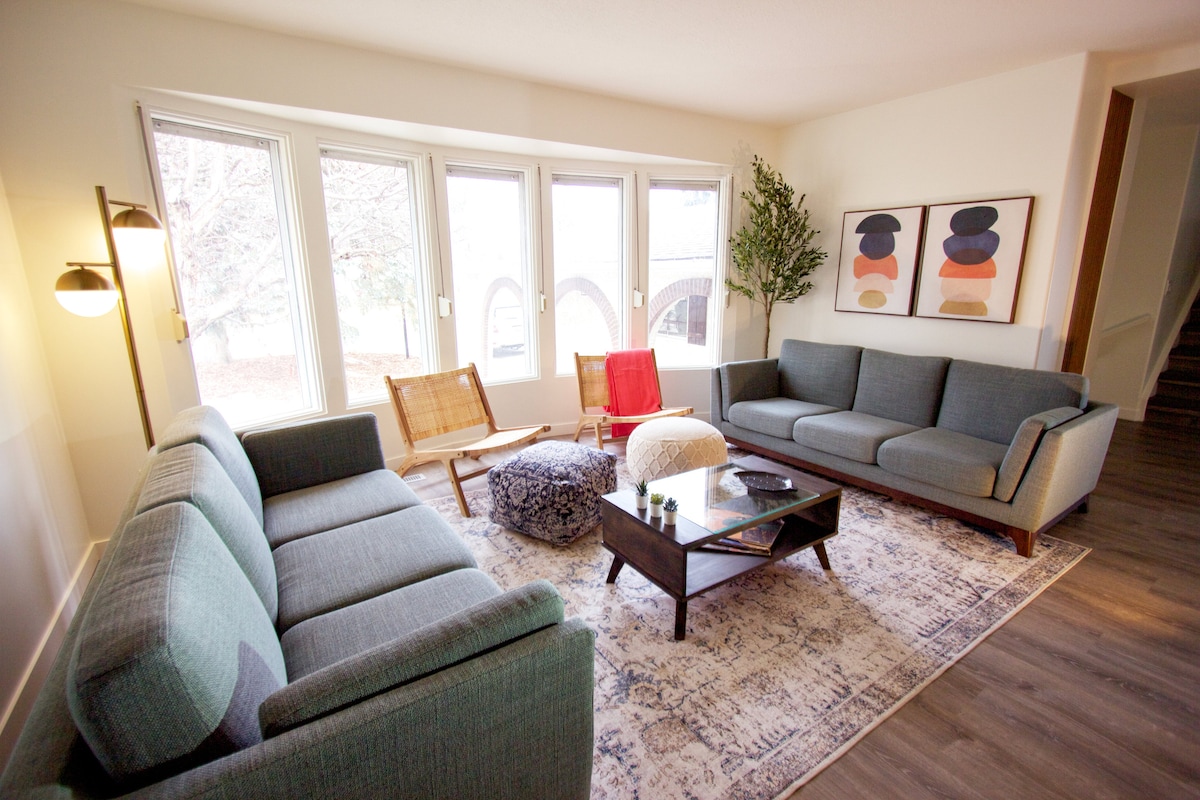 ¡Diseñado para familias! Una hermosa suite con garaje, 2 dormitorios, 1,5 baños, sala de estar y cocina/comedor. ¡Aire acondicionado! Ubicado en un tranquilo barrio familiar en el centro norte de Edmonton, tenemos todo lo necesario para que tú y tu familia disfrutéis de una estancia cómoda. ¡Indícanos el número y la edad de los niños que viajan contigo antes de tu llegada y personalizaremos la suite con juguetes y dormitorios apropiados para su edad para adaptarse perfectamente a tu familia!
