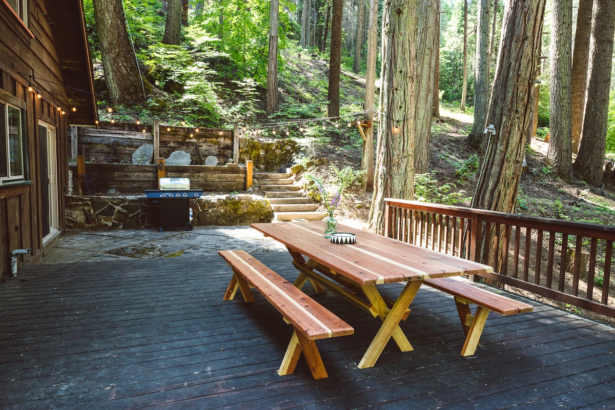 Walk out of your living room to a real waterfall right in your backyard! This ground-floor, two-bedroom, two-bath home offers modern décor, exclusive access to the house and a deck perched on a steep cliff overlooking Nelder Creek. Enjoy high speed internet, stargazing by night, and mountain views by day. Located 15 miles from Yosemite’s South Gate, it’s a tastefully furnished retreat for a true Yosemite experience. Immerse yourself in an authentic Yosemite experience—waterfall included!