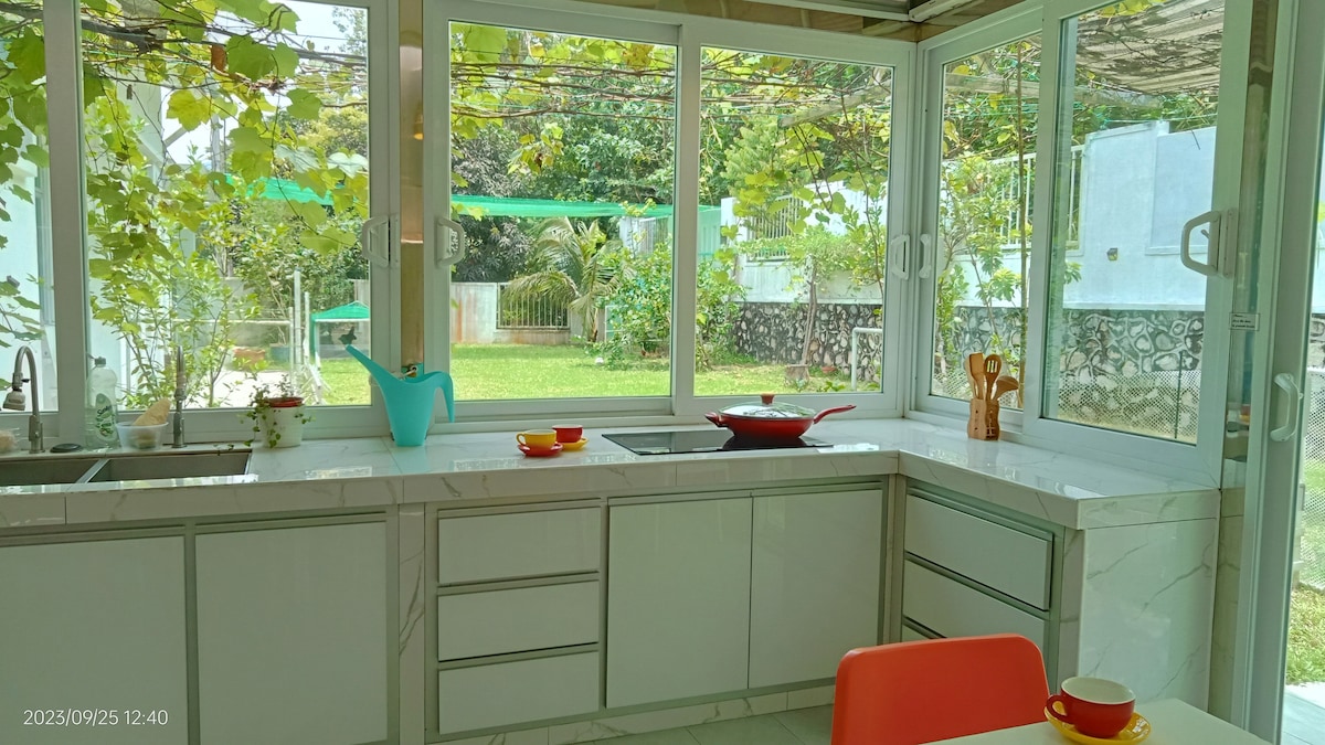 No es un hotel de 5 estrellas. Sin embargo, intentamos muchas formas de satisfacer a cada amigo e invitado, especialmente en comodidad e impresión visual. Un lugar que podrías recordar un poco más y, con suerte, para siempre. ★★Excelente experiencia para: - Matrimonio y compromiso - Reuniones familiares y de amigos - Vacaciones ★★Wifi + TV box (LongTv) ★★Aire acondicionado Sala de estar: sí. Todas las habitaciones - Sí ★★Espacio Amplio y acogedor en el interior y al aire libre. ★★Cocina con acceso al jardín, vista a la vegetación. ★★Toallas, champú y gel de baño incluidos.