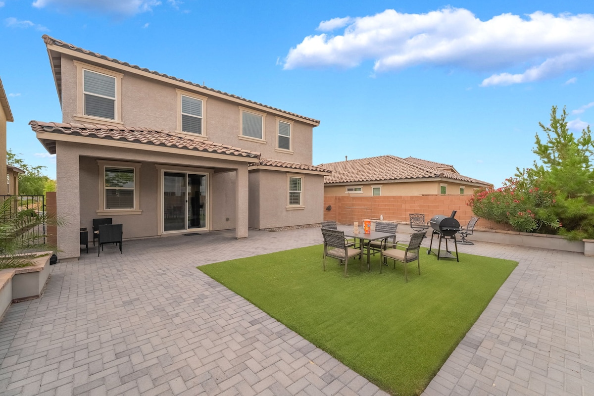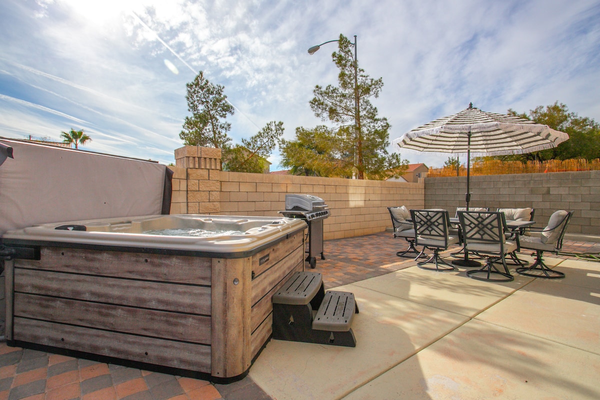 ¡Te damos la bienvenida a tu escapada perfecta al desierto! Esta casa de lujo de dos pisos es ideal para fines de semana en familia o viajes de negocios, y cuenta con una distribución abierta y un amplio patio trasero con una reluciente piscina de entrenamiento, parque infantil, minigolf y cancha de bádminton. En el interior, disfruta del ping pong, las máquinas arcade y el fútbol. A 20 minutos caminando de todas las necesidades de compras. A 20 minutos en auto de la franja. ¡Barrio muy seguro con restaurantes cercanos y cerca del Parque Nacional Red Rock Canyon! ¡¡¡Perfecto para los niños o para los escaladores!!!
