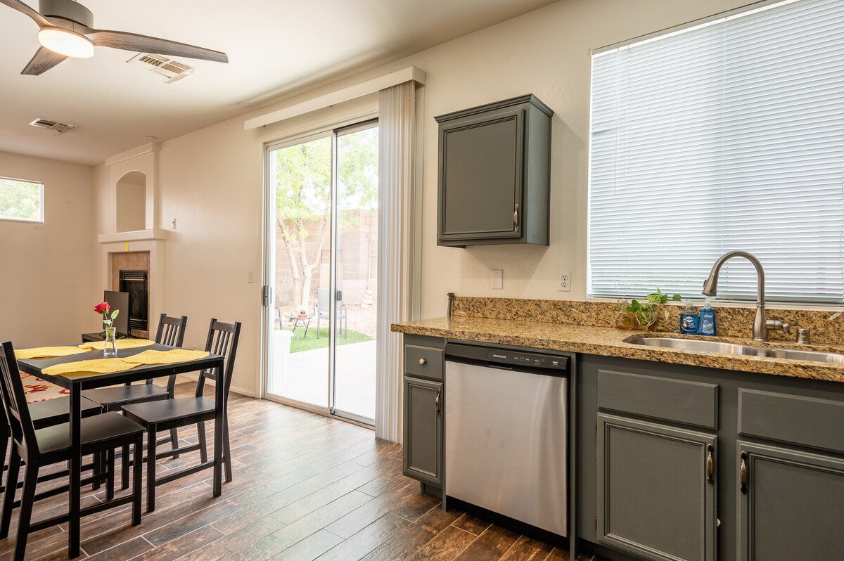 Relájate con toda la familia en este lugar tranquilo para hospedarte. La renovación se terminó en 2023 con electrodomésticos nuevos. Hay 3 dormitorios en la casa: 1 cama tamaño king y 2 reinas. El patio trasero tiene acceso completo con un patio. Ofrecemos Hulu, Disney+, Peacock y Paramount en nuestros televisores. A la franja: 20 minutos en auto. A Red Rock Canyon: 15 minutos en coche Al aeropuerto: a 20 minutos en coche. No hay acceso al garaje. La entrada se adapta a 2 vehículos. Se incluye aparcamiento gratuito en la calle.