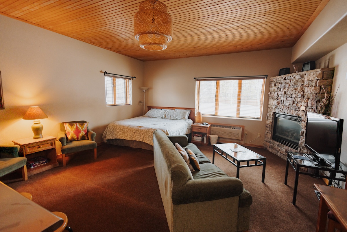 El estudio de alquiler Peak View Place tiene capacidad para 4 personas, tiene hermosas vistas a la montaña, una bañera de hidromasaje de temporada en el lugar y se encuentra a poca distancia a pie de Main Street y del servicio de transporte Summit Stage que une Frisco con Breckenridge Ski Resort (11 millas) o Copper Mountain (7 millas). En el invierno hay esquí y tubos en Frisco Adventure Park a solo 1.5 millas de distancia, mientras que para el verano, tome su SUP o kayak a Frisco Bay está a solo 1 milla de distancia. Un sinfín de rutas de senderismo y el carril bici están justo fuera de la puerta.