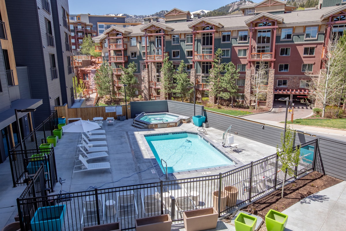 Modern 1 bedroom at Canyon Haus in the heart of Canyons Village - just a 3 minute walk to Red Pine Gondola. Condo has spacious bathroom, stocked kitchen and gorgeous mountain views from the patio. This convertible space has a desk that transitions in to bunk beds and a couch that hides a queen murphy bed! The hotel has a game room, pool, hot tub and gym with Peloton bikes *Sleeps 6 *free parking *All Resort Fees Included *NO RESORT FEE FOR 30 DAY+booking *20% Off Ski Rentals
