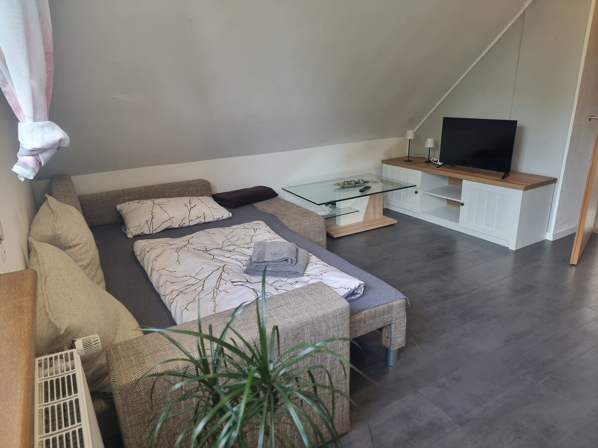 Diese gemütlich Dachwohnung ist sehr liebevoll und geschmackvoll eingerichtet. Sie befindet sich in einer ruhigen Wohnsiedlung über einer Garage im schönen Lastrup und hat einen eigenen Eingang. Sie verfügt über ein schönes, helles Badezimmer mit Badewanne, Waschtisch und WC. Nur eine Straße weiter befindet sich das Naturschwimmbad mit Hallenbad. Der schöne Dorfpark mit See sowie Restaurants, Einkaufsmöglichkeiten, Apotheken, Ärzte, Friseur etc. sind in nur wenigen Gehminuten erreichbar.