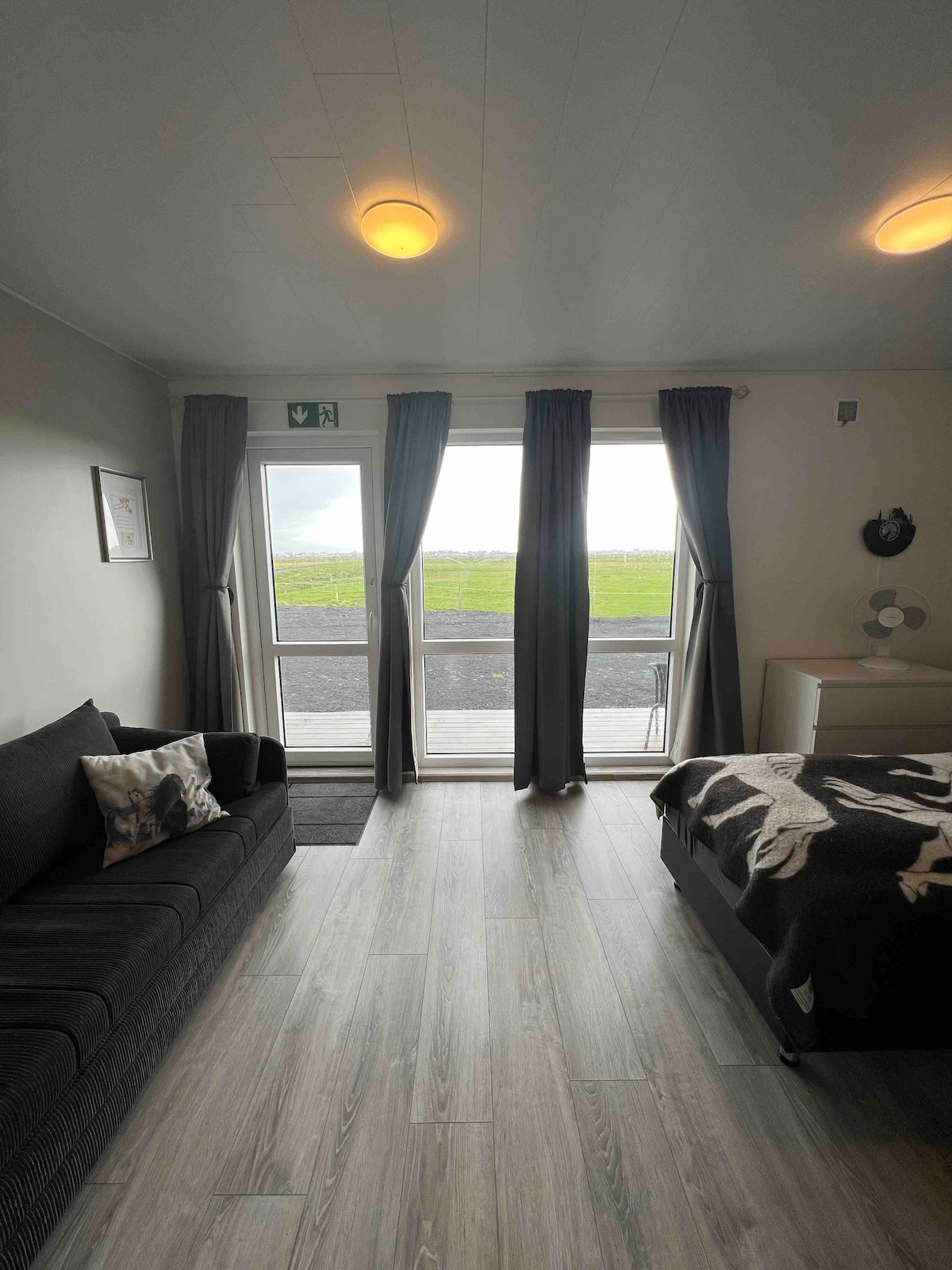 Hermosa casa agradable (la de la izquierda) para 2-4 personas, con 2 camas individuales y 1 sofá cama (para 1-2 personas). La casa tiene cocina americana y baño. Sólvangur es una granja de equitación en la costa sur de Islandia. Tendrás maravillosas vistas a la naturaleza, caballos, ovejas, perros y gatos en los alrededores. La tienda estable está a la vista si te gusta conocer el caballo islandés haciendo clases de equitación, paseo infantil o una visita estable. Recibirás el enlace después de confirmar tu reservación.