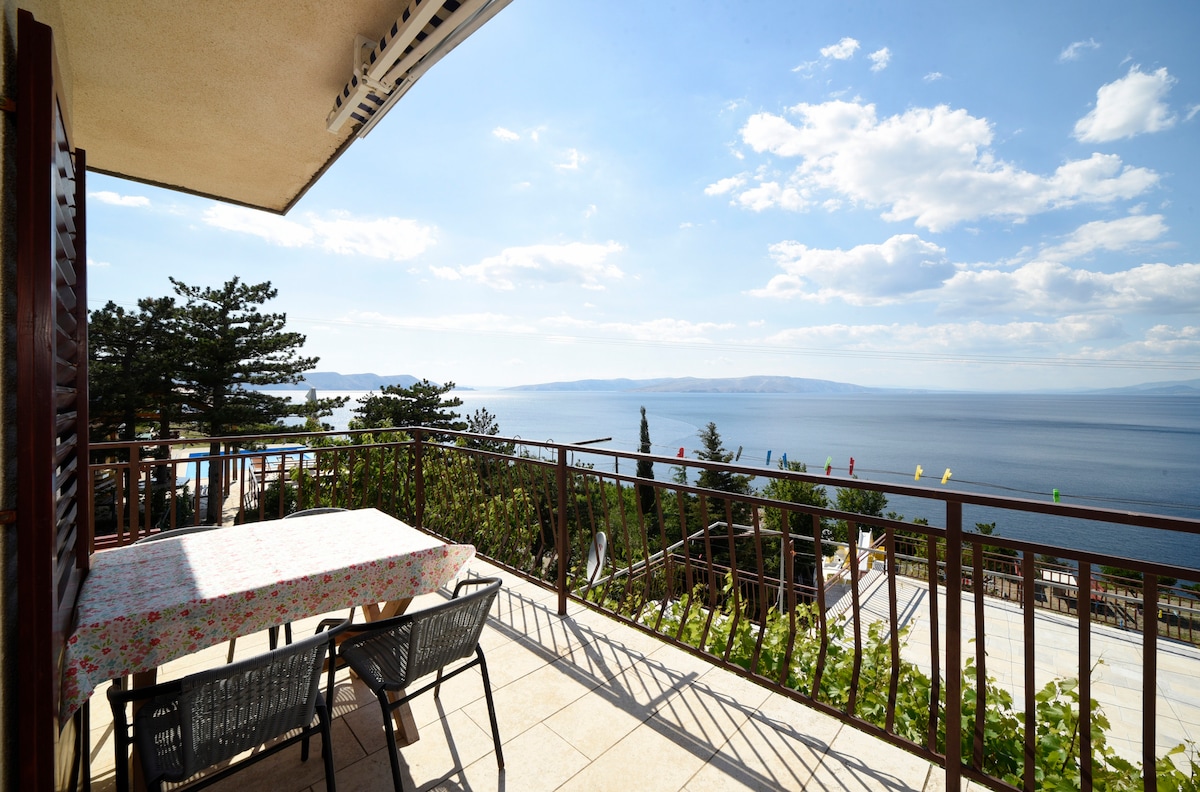Our house with sea view is located in the village Zakosa-bay near the towns of Senj and Sveti Juraj,under the mountain Velebit.There are three national parks in the vicinity.Nice place for a quite holiday. This apartment is for four persons. My place is good for couples, solo adventurers, business travelers, and families (with kids).