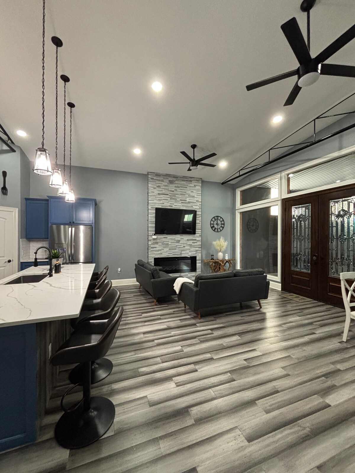 Escápate a nuestro refugio 5 Million Stars Woodland, una casa de campo moderna y nueva en Flatonia, Texas. Experimenta el lujo contemporáneo y el encanto rústico en este sereno refugio en el bosque. Te esperan impresionantes suelos de madera, una cocina totalmente equipada y vistas panorámicas. Relájate en el porche cerrado, explora las ciudades cercanas y sumérgete en la naturaleza. ¡Reserva ahora para disfrutar de tranquilidad y rejuvenecimiento!