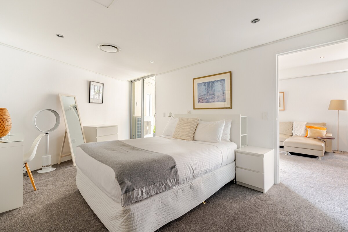 Dormitorio: * Cama tamaño queen. Sube y baja la cabecera y el pie de la cama de forma independiente con solo tocar un botón. * Televisor con mando a distancia y TV gratuita. * Ventilador de techo silencioso y aire acondicionado. * Inodoro y ducha en suite con agua caliente de gas en línea Sala de estar: * Cocina americana con placa de inducción, microondas, nevera pequeña, lavavajillas, cafetera Nespresso y tostadora. * Pequeña sala de estar con mesa de comedor y tres sillas. * Televisor con control remoto y TV gratuita. * Sistema de acoplamiento de audio personal para adaptarse a iPod/iPhone. * Cama individual plegable disponible para huéspedes adicionales (con cargo adicional) * Aire acondicionado Otras características: * Entrada segura sin llave y privada * Acceso a internet wifi gratuito * Propiedad libre de humo. * Se proporcionan sábanas y toallas. * Acceso a una pequeña terraza soleada. * Se aceptan estancias cortas (mínimo 2 noches) * A minutos de la bulliciosa King St y * Muchas lavanderías y restaurantes cerca * Estaciones de St Peters, Erskineville y Newtown a poca distancia a pie. * Dos adultos máximo. * Se consideran todas las solicitudes razonables. Cubierta exterior compartida con los propietarios. La terraza no es apta para niños. Hay muchas lavanderías locales cerca. El apartamento es privado y está conectado a la residencia. Deja una nota en la pizarra blanca, llama por teléfono, envía un mensaje de texto o toca nuestra puerta si necesitas algo para que tu estancia sea aún mejor. Ubicado en el barrio de Erskineville, a cinco kilómetros del centro de la ciudad, el apartamento está a la vuelta de la esquina de la emblemática King Street, que alberga restaurantes, pubs y tiendas. Las estaciones de Erskineville, St. Peters y Newtown están a pocos pasos. Hay muchos transportes cerca. Fácil acceso a la ciudad, autobús o tren. A pocos minutos a pie de la estación de St Peters, a 10 minutos de las estaciones de Erskineville y Newtown. Autobuses a la vuelta de la esquina en King Street. Espacio encantador y tranquilo con entrada privada.
