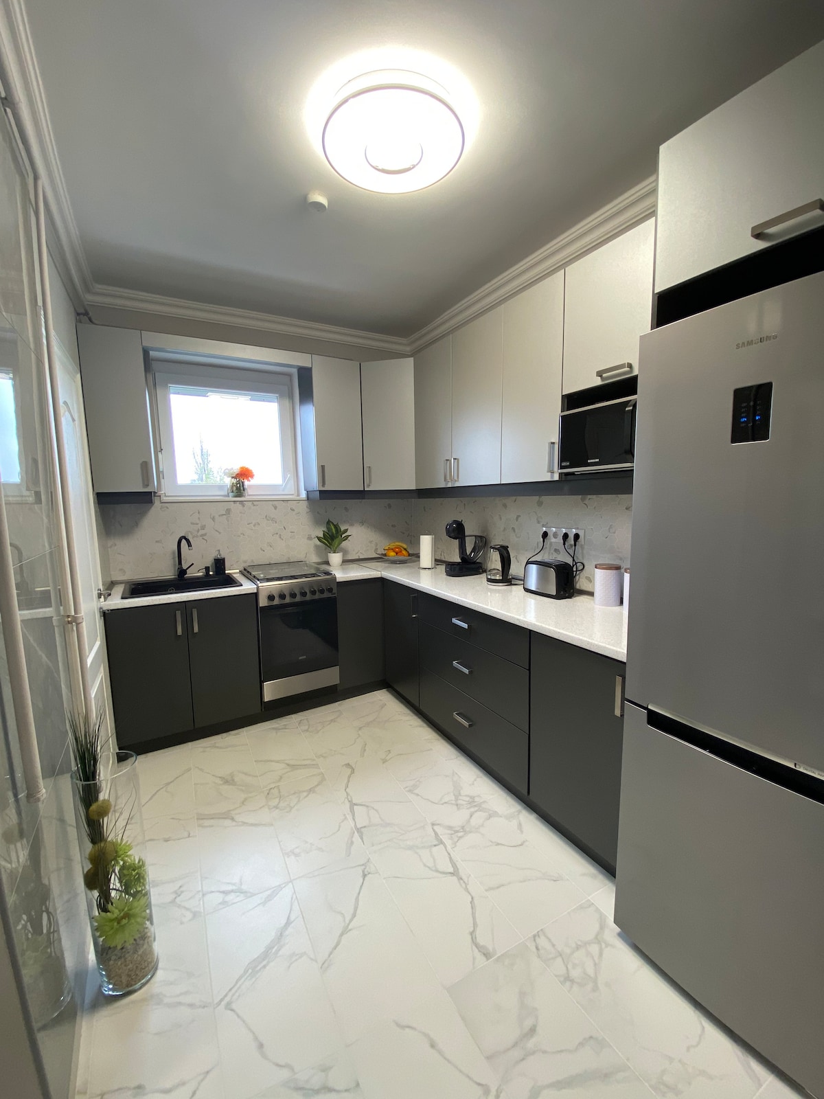 Apartamento cívico de gran altura en un edificio antiguo, amueblado con estilo, con todas las comodidades. Apartamento con aparcamiento propio en el centro de la ciudad, con acceso directo a la calle peatonal, a 100 m del castillo, a 200 m de la playa, entre restaurantes, lugares de ocio, cafeterías y bares. Ideal para familias con 1 o 2 hijos, parejas. El alojamiento no es realmente adecuado para 4 adultos, ya que una de las camas es solo un sofá cama. El apartamento solo tiene una cocina de té, que no es adecuada para cocinar.