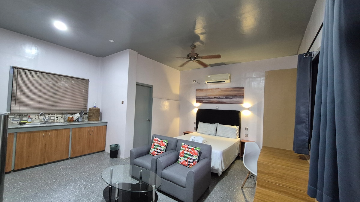 A lovely 1 bedroom apartment situated near by the famous Cliff diving spot and The Ruins of Santa Fe Bantayan Island. This very spacious apartment (60sqr meters floor area) comes with a full kitchen, and a large balcony with relaxing ambiance. Pls. Note we only have an Air-conditioning in the bedroom and fan only in the living room. Free car park, good for 1 vehicle only.