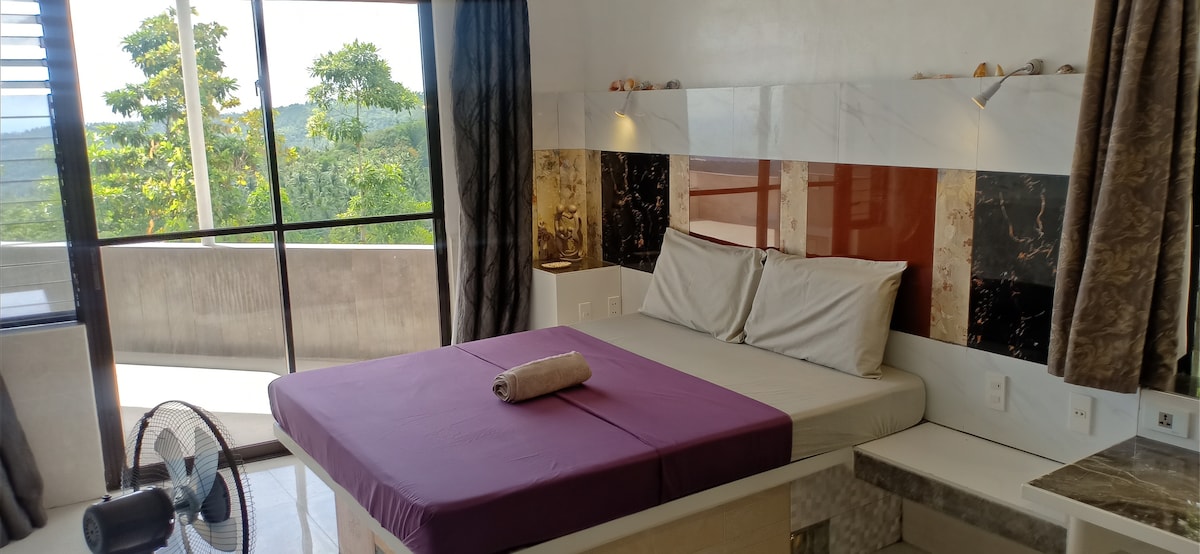 Wake up invigorated seeing the sunrise from the master bedroom bed. An elevated two- bedroom house with large private patios. Host family lives 100 meters away. We can shop, cook meals, guides transport. There are always choices of Motorcycle rental locally. The second bedroom is great for children but we supply a 4th folding bed for 4 adults. Solid work desks and the free included WIFI signal is fast. Escape here into serenity, warmth and nature, beaches 15 mins away.