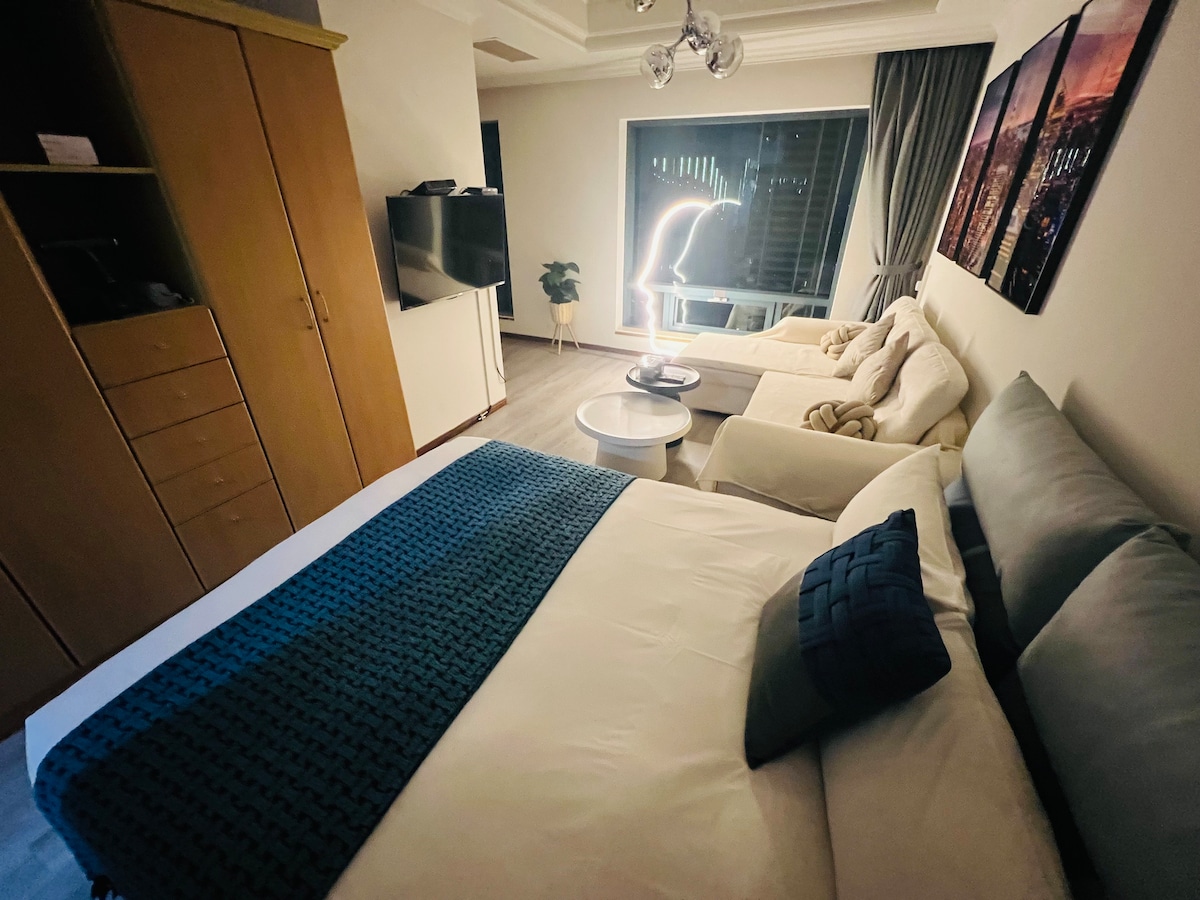 Casa elegante al estilo coreano/caos/televisión de 55 pulgadas Netflix/vistas hermosas de los edificios altos/habitación para 2-3 personas/avenida verde de Qinmei/museo/ópera nacional