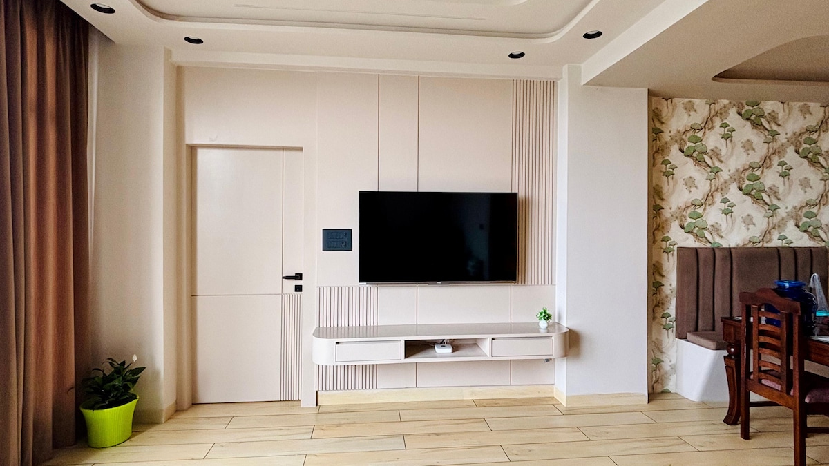 **Currrently swimming pool is closed** Welcome to our serene apartment nestled in a premier society, perfect for up to 4 guests. Enjoy luxurious amenities like a swimming pool, gym, and serene temple. Located near the Taj Mahal yet peacefully removed from the city's hustle, our high-floor unit offers panoramic green field views, ensuring privacy, excellent air circulation, and abundant natural light for a tranquil ambiance.