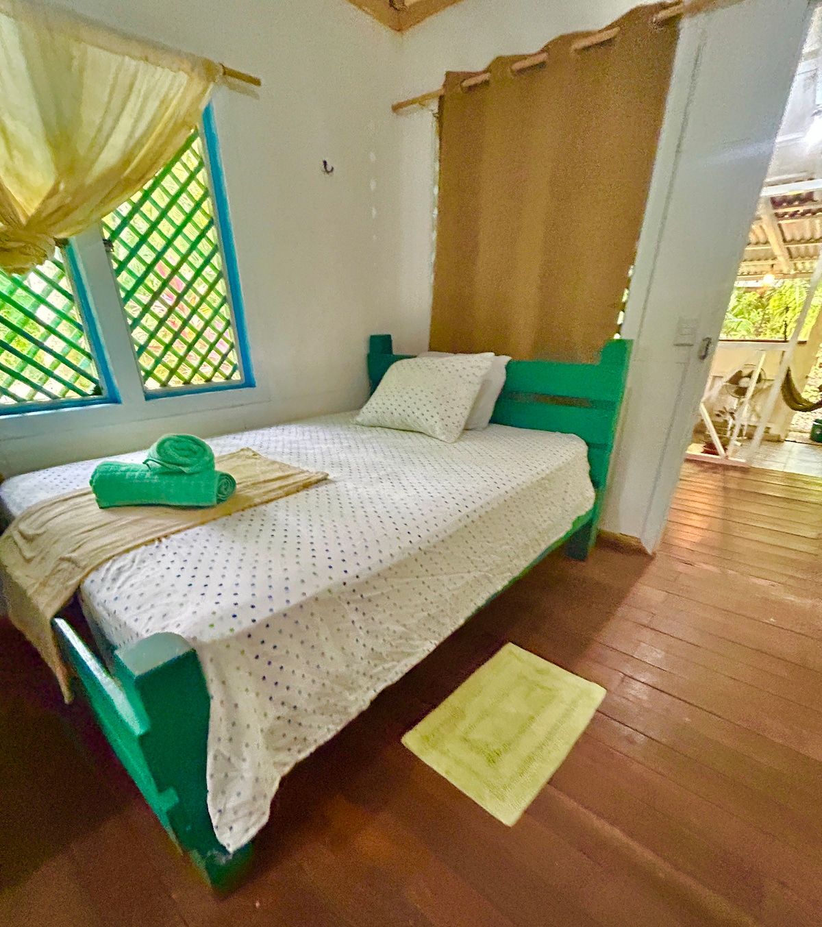 Caribbean Style! Blessed House is a Caribbean local family property. 5 minutes from Puerto Viejo, with 24/7 security, an amazing pool with a BBQ set and kitchen you can share, private parking and an amazing view of all the tree tops and the coast you need to explore. Hummingbird Bungalow is a great space for couples who want their own and beautiful private and quiet space or for a small group or family of three, where that third guest can sleep comfortably in his/her own bed.