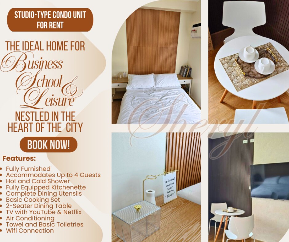 Explora nuestra casita. ¡Te damos la bienvenida! Estamos encantados de hospedar aquí. Este acogedor condominio cuenta con una vida sofisticada zona perfecta para relajarse con un taza de café, té o un vaso de vino. El condominio está completamente amueblado con electrodomésticos nuevos, muebles, y utensilios para tu comodidad. Disfruta de un fácil acceso a la ciudad de Davao, donde puedes explorar la gente local tiendas, restaurantes y tiendas centros comerciales cercanos. ¡Siéntete como en casa y disfruta! ¡Tu estancia en nuestro encantador condominio de la ciudad!