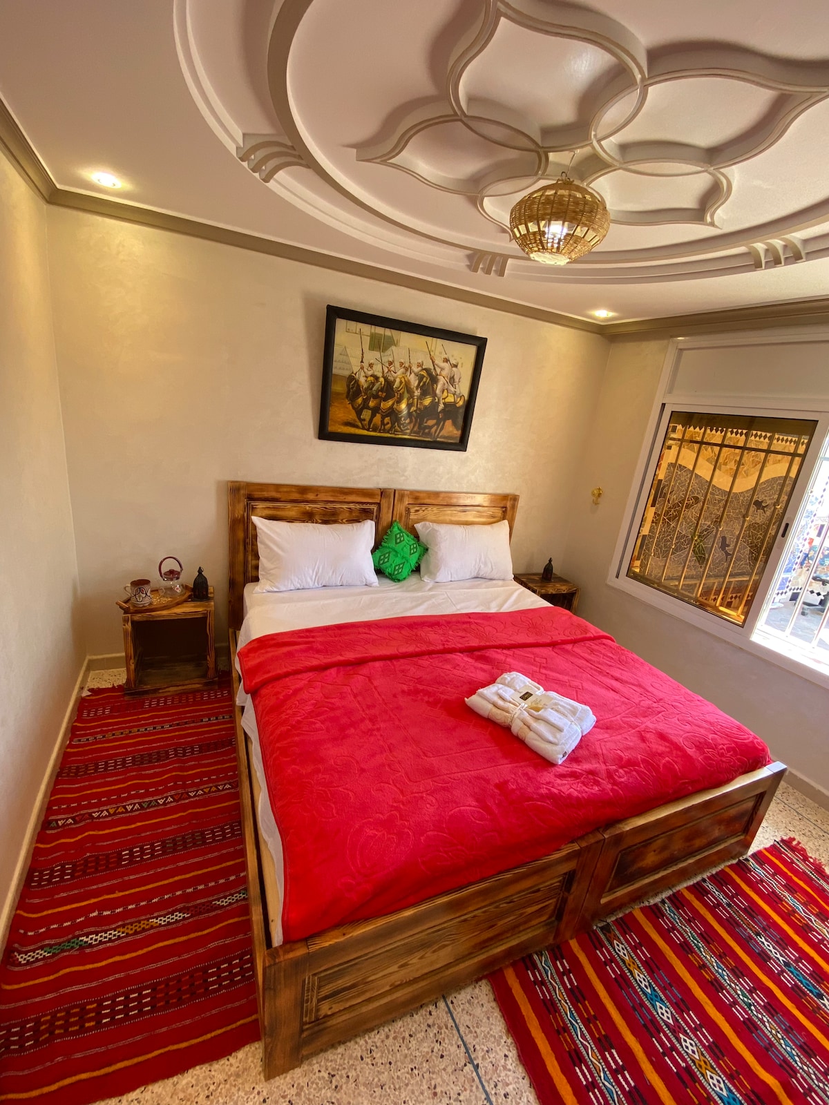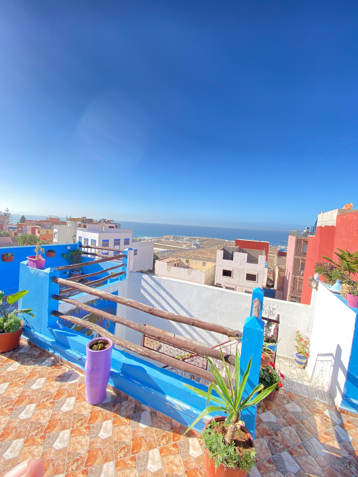 En una humilde calle encaramada en la encantadora ciudad de surf de Tamraght, encontrarás nuestra casa. Nuestras habitaciones son luminosas y ventiladas, con cada detalle cuidadosamente seleccionado y amorosamente organizado. Desde nuestras espaciosas azoteas, tienes una amplia vista del mar, de toda la encantadora ciudad y de las montañas. Un panorama completo de 360 grados. Perfecto para practicar yoga, ver las olas y descansar. A 5-10 minutos a pie de tiendas, restaurantes y a 15 minutos de la playa. Podemos preparar comidas y organizar experiencias. DESAYUNO (con vistas) INCLUIDO.