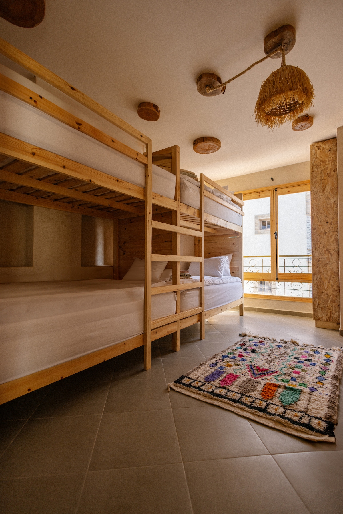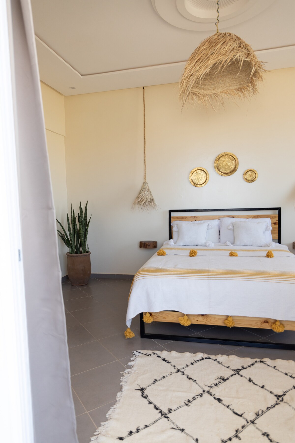 Cozy twin room inspired by the traditional charm of Fez, offering a peaceful and bright space to relax after a surf day. Located on the second floor of Nomazigh Surf House, guests can enjoy access to the chill terrace, co-working area and a rooftop with ocean view. Just a short walk to local bakery (1 min), Happy Tamraght restaurant (2 min), and Manzili Co-working (4 min). Close to popular surf spots like Devil’s Rock and Banana Point.