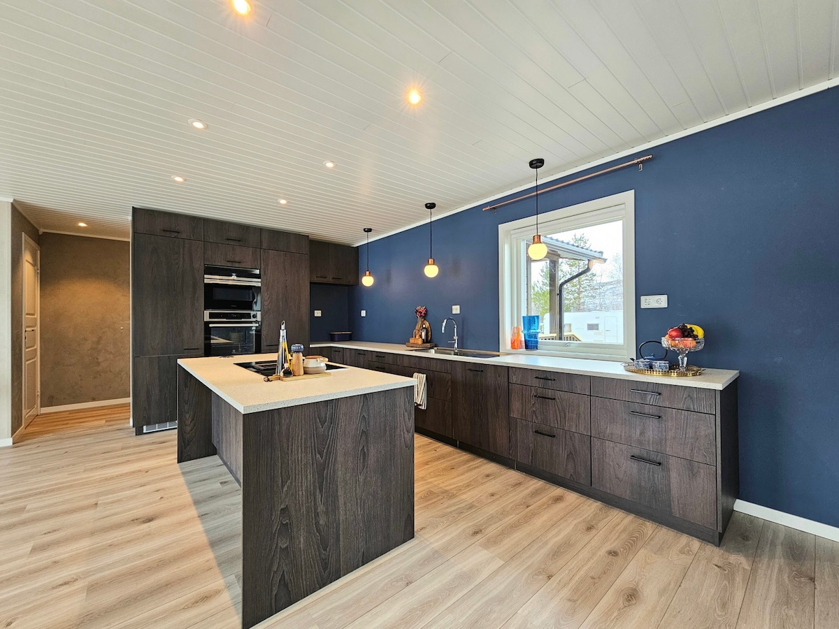 Moderno alojamiento Aurora con chimenea, vistas a la montaña y auroras boreales Descubre la magia del Ártico en nuestra moderna villa totalmente equipada en Polmak, uno de los mejores lugares de Europa para ver las auroras boreales. Disfruta de una contaminación lumínica mínima, acogedores suelos con calefacción, una chimenea y un diseño contemporáneo. Perfecto para la aventura o el trabajo remoto con WiFi de alta velocidad, un espacio de trabajo dedicado y una cocina de chef totalmente equipada para estancias inolvidables en la naturaleza.