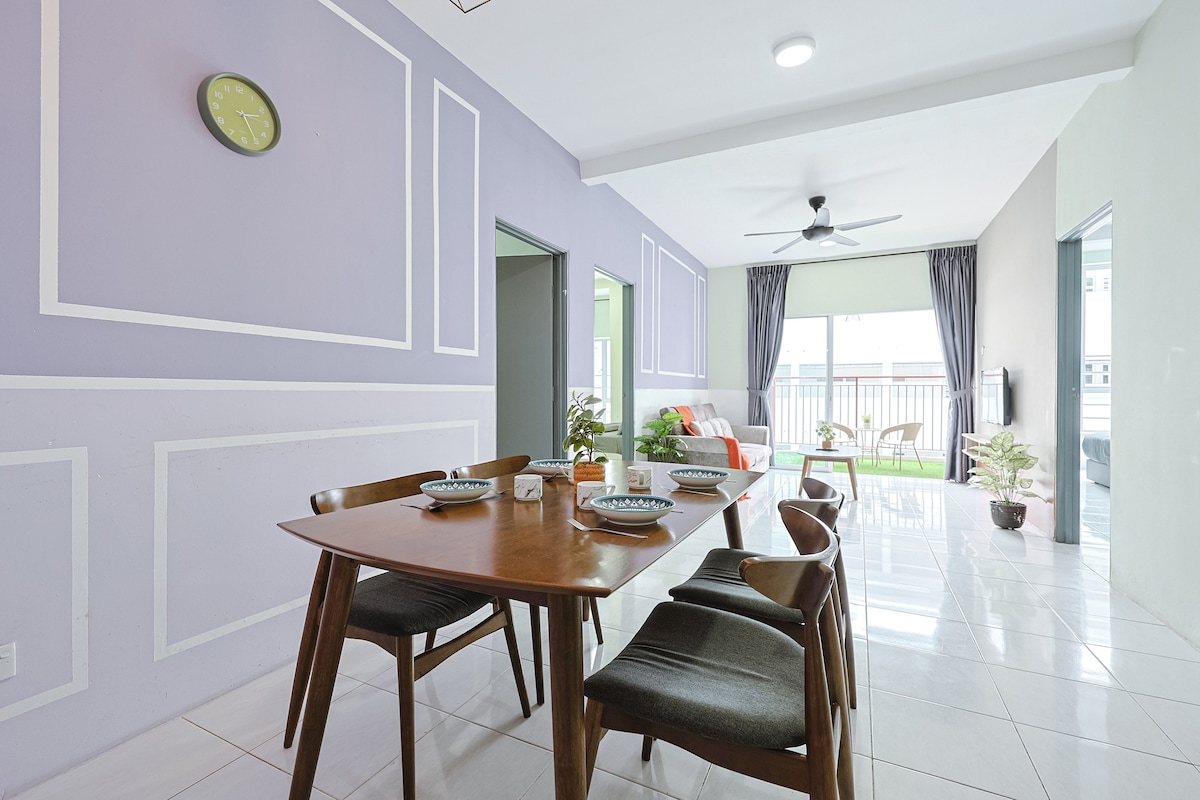 Ubicada en Golden Hills, un municipio moderno cerca de atracciones turísticas y un mercado nocturno de fin de semana, esta villa semi-D bellamente decorada combina arte y naturaleza. El jardín trasero es perfecto para barcos de vapor y barbacoa, y el balcón ofrece un espacio tranquilo para relajarse. La sala de estar cuenta con un televisor LED de 75 pulgadas con TV para tu entretenimiento. Nuestras habitaciones están equipadas con colchones de alta calidad para un sueño cómodo. Un dispensador de agua Coway y wifi de alta velocidad se suman a tu conveniencia.