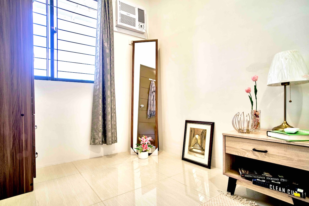 Relájate antes de tu vuelo en esta tranquila unidad con aire acondicionado de 1 dormitorio en Paseo de Sta. Barbara cerca del aeropuerto internacional de Iloilo. Relájate y ve tu Kdrama favorito en nuestra televisión inteligente con netflix. Llegada autónoma flexible después de las 2:00 p. m. con tu propia entrada al alojamiento.