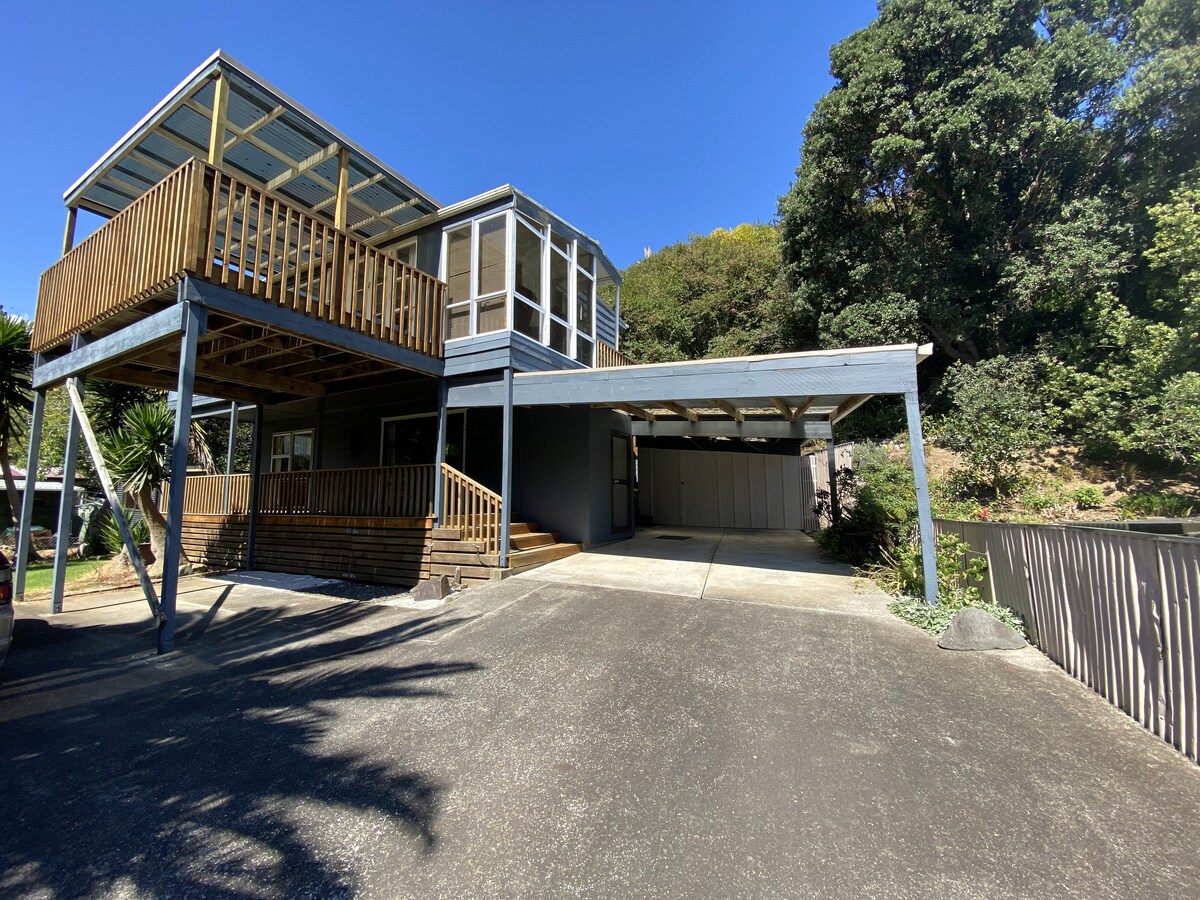 Trae a toda la familia o empaca el aparejo de pesca y trae tu barco y compañeros de pesca, este lugar lo tiene todo. Relájate en una de las 2 amplias cubiertas, escucha a los pájaros mientras disfrutas de la paz de las colinas cubiertas de arbustos circundantes. Prepara tu captura y cena al aire libre o disfruta de una comida abundante en el pub local justo alrededor de la esquina. Un clásico kiwi bach en un lugar tranquilo lejos del bullicio loco. A solo 5 minutos a pie de la playa Tapu para nadar y salir de la lechería.