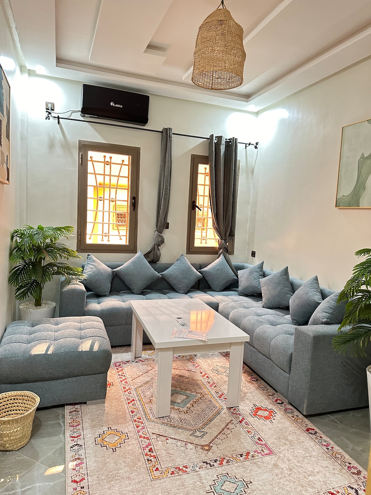 ⛔️Couple marocains non mariés interdits Bienvenue dans notre appartement moderne et lumineux, idéal pour couples, familles ou voyageurs. 🛏 2 chambres confortables | Salon avec TV et Wi-Fi | Cuisine équipée | Salle de bain moderne | Parking gratuit devant la maison. Situé dans un quartier calme à quelques minutes du centre-ville, Un lieu parfait pour se détendre après vos découvertes du sud marocain..(1chambre air conditioner,acte de mariage pour les marocain)