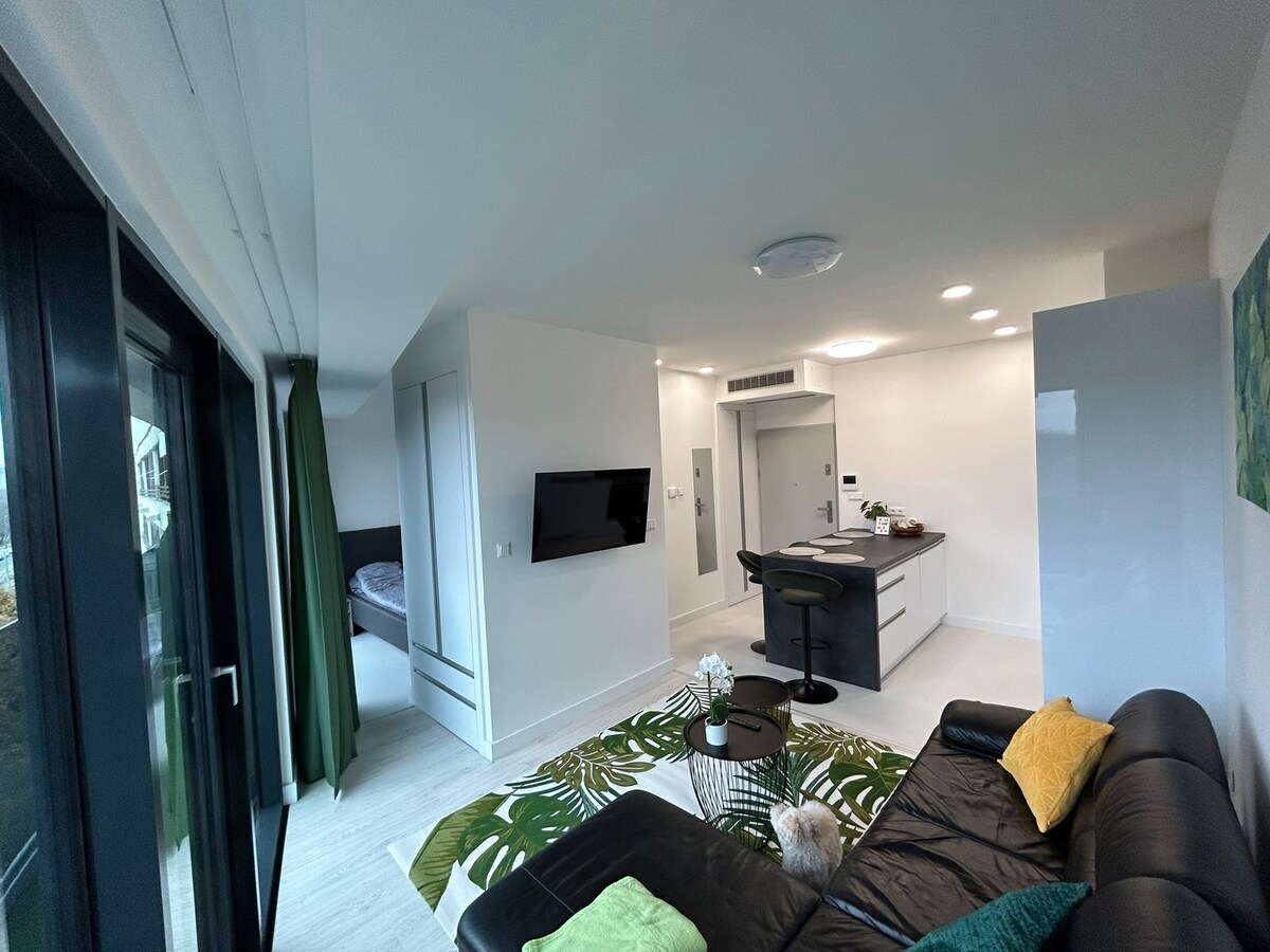 Apartamentul este unul spatios cu 75m2 utili si o terasa de 20m2 cu o priveliste unica asupra orasului si inprejurimilor,fiind situat la etajul 9.Locatia este una centrala cu parcare subterana gratuitaAre un dormitor un living baie si bucatarie complet utilata.Dispune de un pat matrimonial si doua canapele extensibile.