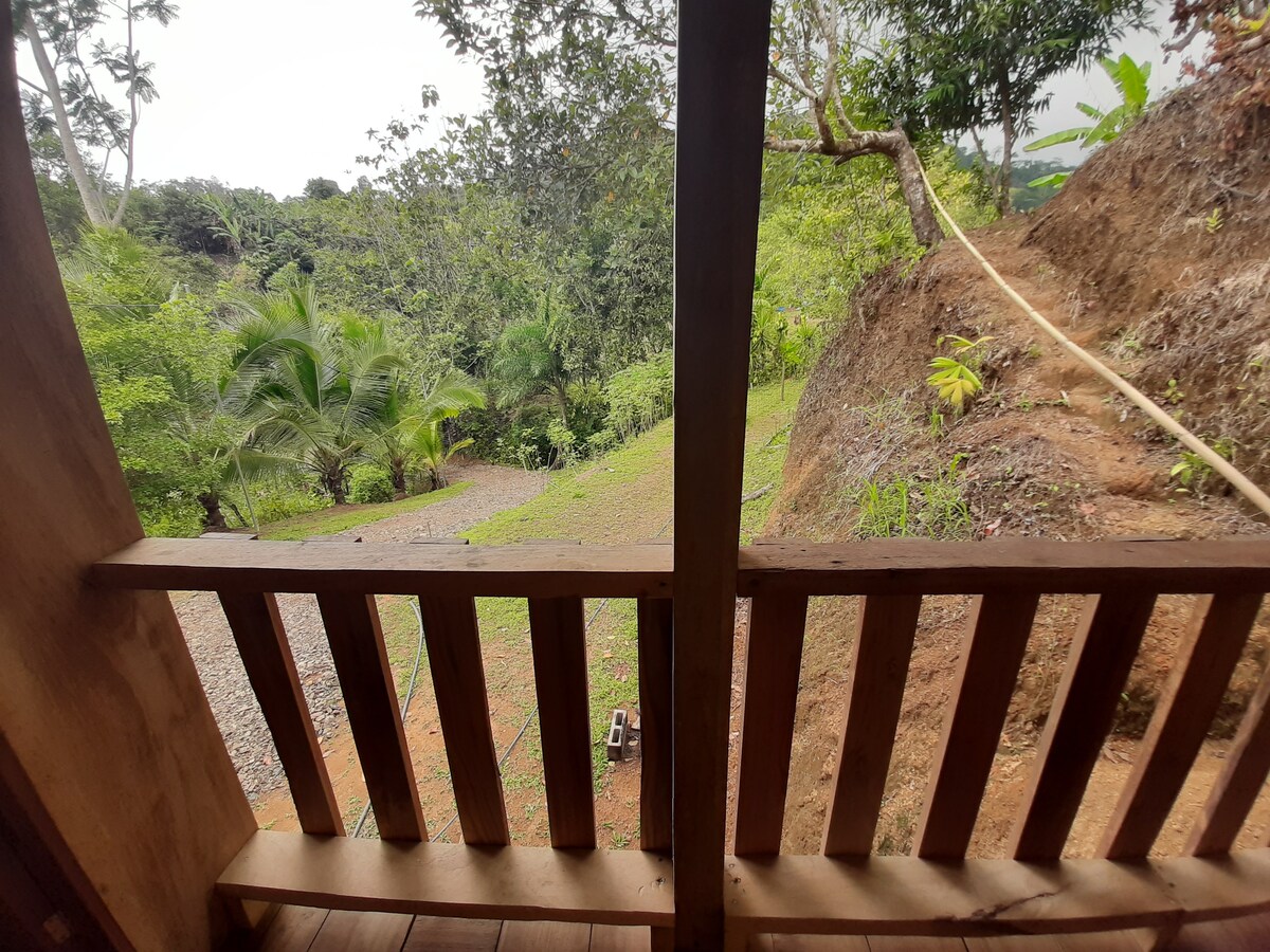 Bungalow totalmente equipado en medio del bosque tropical , a 15 minutos del centro de Quepos (( carretera-pavimento)) un lugar genial para los amantes de la naturaleza y quiénes le gusta la paz y tranquilidad que ella ofrece, muy buen lugar para el avistamiento de aves. Tiene capacidad para 3 personas, área de cocina equipada, sala de estar, cuarto privado , (WIFI), parqueo privado y piscina.