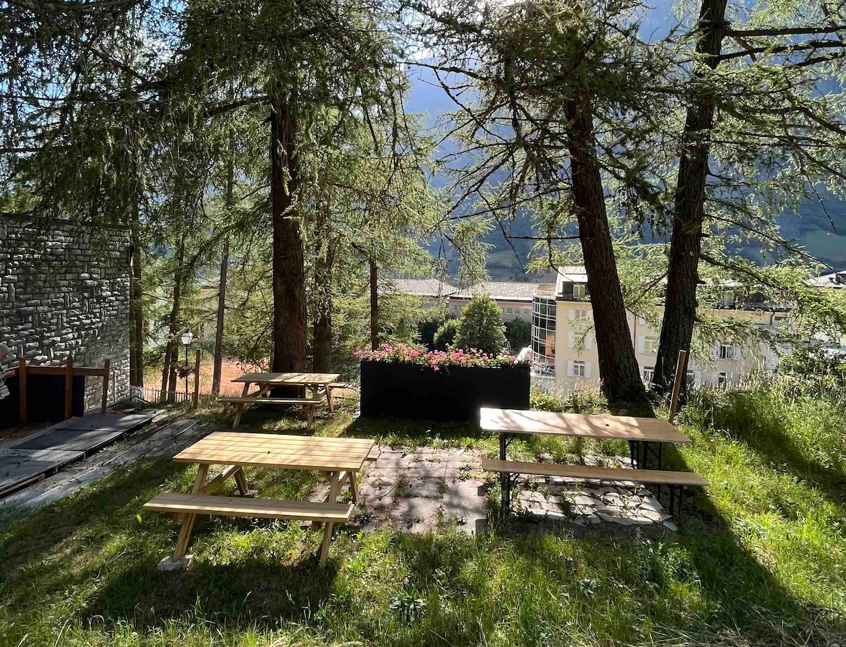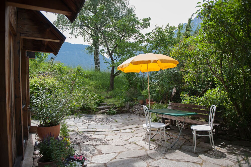 El apartamento está situado en la colina de Biela, en una ubicación única sobre Brig con vistas al valle del Ródano y las montañas circundantes. Un acogedor jardín rodeado de bosques, prados y una acequia abierta (Suone, Bisse) separa la propiedad de la adyacente reserva natural «Achera Biela» (estepa rocosa del Valais con vegetación seca). Se puede llegar a la casa desde el aparcamiento a través de un corto camino forestal (200 m y apto para maletas con ruedas).