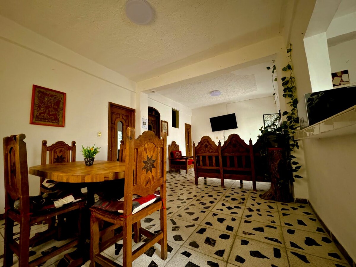 Bienvenid@s a este bonito departamento. Descubre la escapada perfecta en este precioso pueblo mágico,si vienes por negocio o placer está idealmente situado, tu familia, tu pareja (e), estará cerca de todo si te hospedas en este alojamiento céntrico, cerca de ti encontrarás, farmacia del ahorro y guadalaja, súper che, teleférico, monte Taxco tiendas, verdulería y hasta una Marisqueria, transporte público pasa saliendo. Con capacidad para 4 personas podrás disfrutar de una experiencia placentera.
