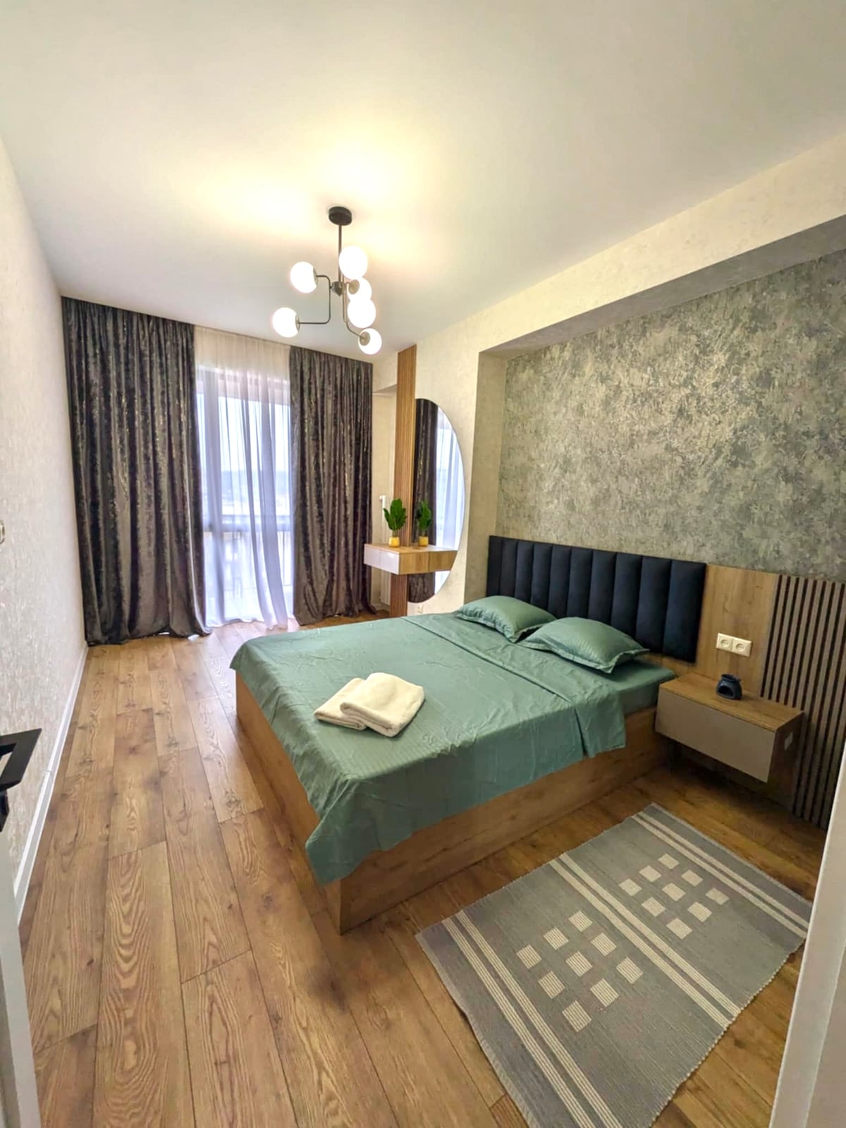 M2 Building Area At the Marshal Gelovani, (opposite Agro-hub) Book one of the 3 apartments in the M2 residential area (green or blue apartment on the 7th floor or apartment on the 8th floor) and live comfortably in a studio-type apartment, where you have the highest comfort, a deluxe bed, a separate bedroom, a balcony and all the necessary appliances that make your life comfortable and enjoyable. The TV, furniture and appliances located in the apartment give the apartment a deluxe category.
