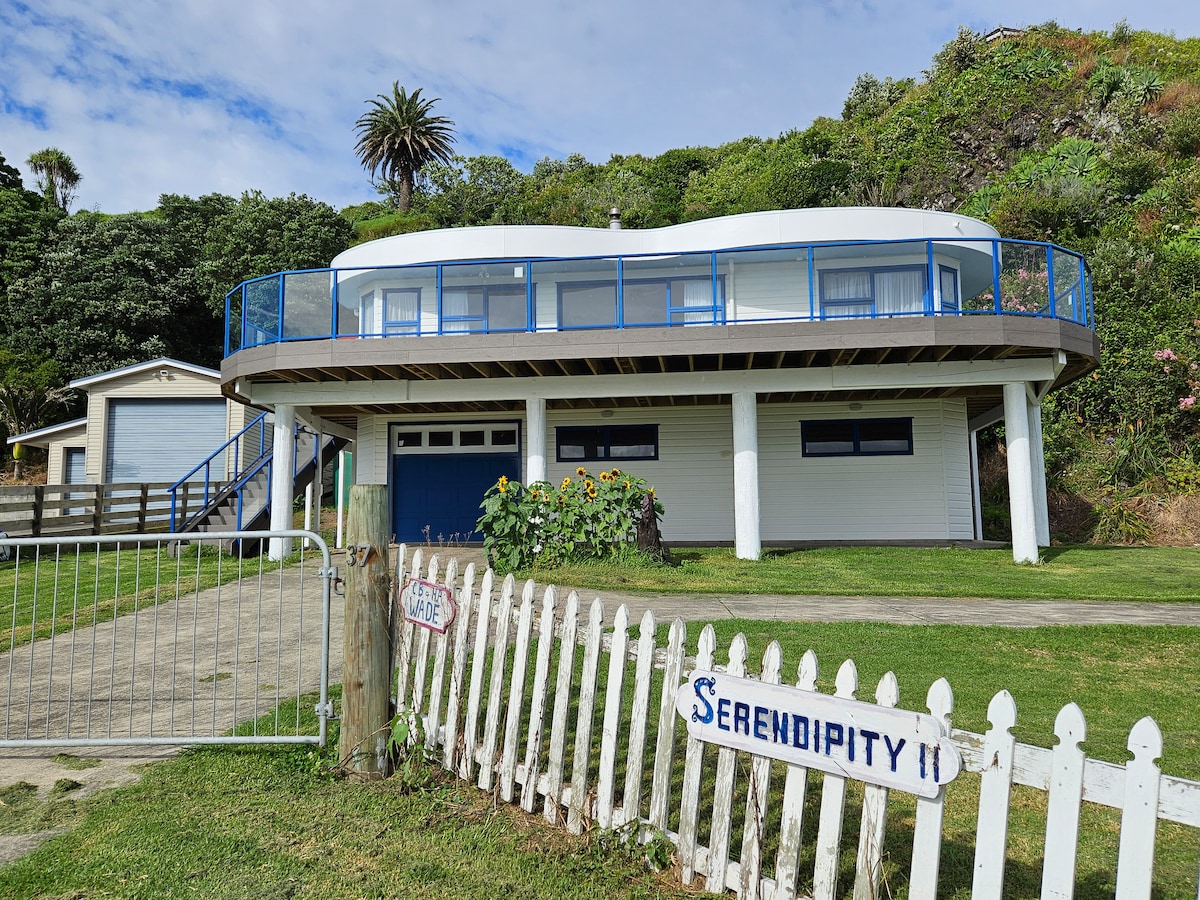 Desconectate de las preocupaciones en esta espaciosa y tranquila casa ubicada en un sitio elevado en medio de la bahía. Recoge un famoso pastel de paua en el Café 35, sírvete uno frío y siéntate en la terraza para ver el mar y el cielo cambiar de azul a púrpura, de rosa a naranja. Disfrute de espectaculares amaneceres y puestas de sol y vistas panorámicas desde casi todas las habitaciones. ¡Ve a dormir al sonido hipnótico de las olas y luego levántate y hazlo todo de nuevo! Kia tau te rangimarie...