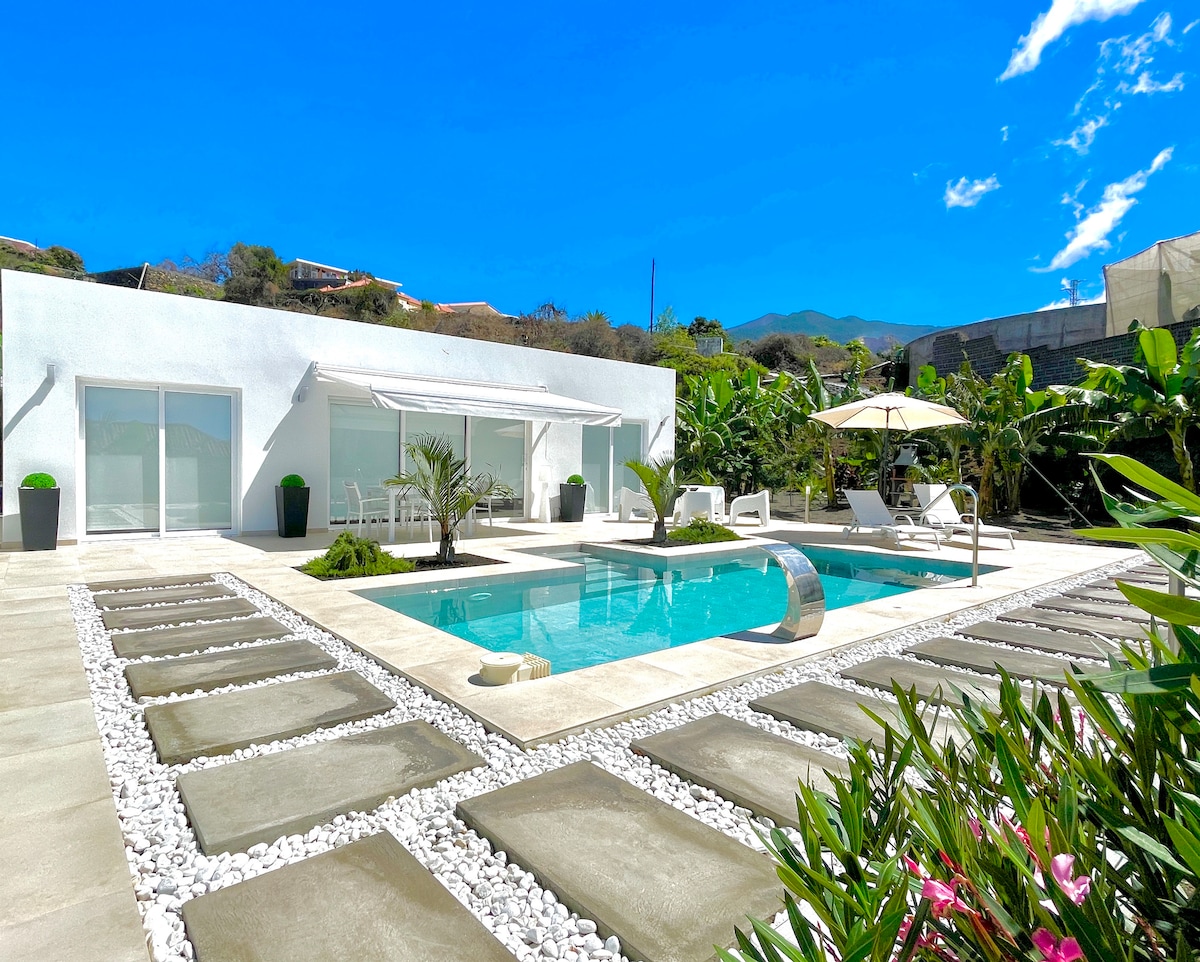 Exclusiva villa totalmente equipada con todas las comodidades ubicada en una tranquila e intima finca de cultivo artesanal de plátanos. Recientemente construida con materiales de la mejor calidad es la representación perfecta de la modernidad y comodidad. Esta preciosa propiedad de alto nivel cuenta con amplios ventanales que bañan de luz natural todas las estancias. Dispone de Wifi , Smart TV, piscina privada, zona chill out, etc.