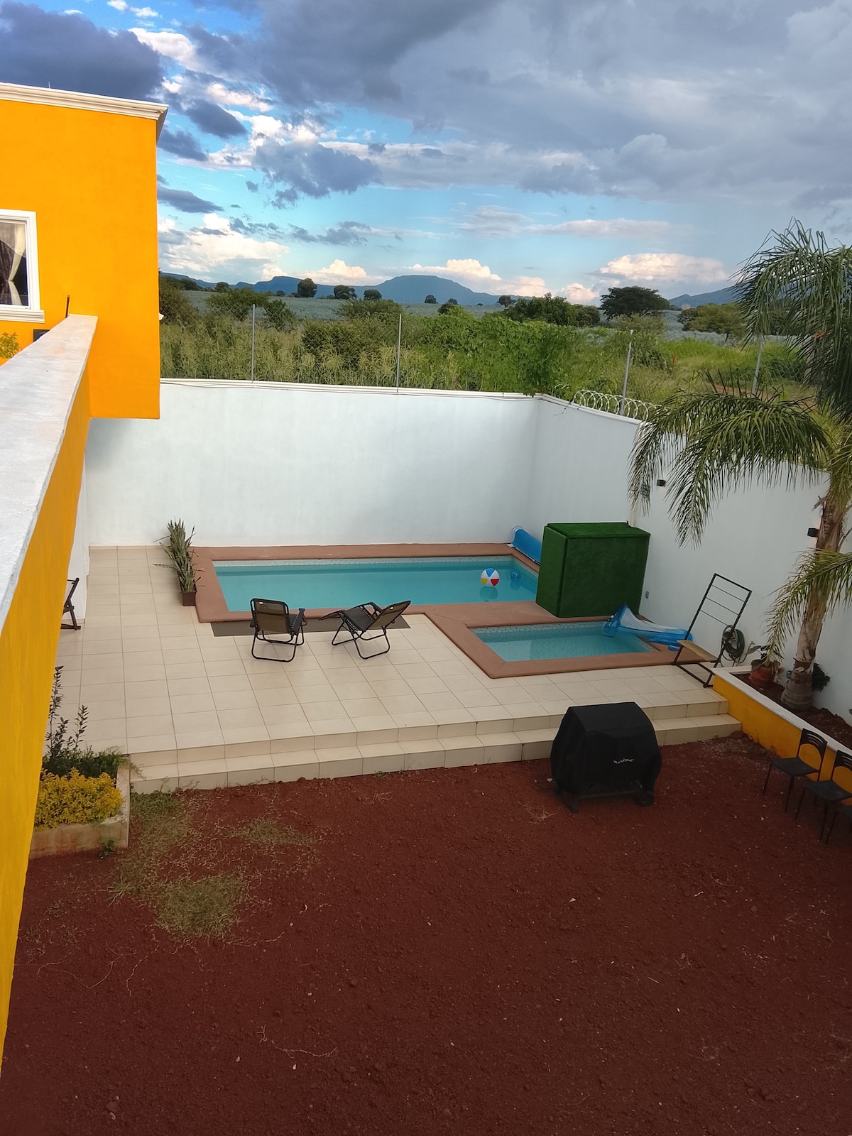 RESERVA CON NOSOTROS Hola! Somos Carlos, Liz y Jenny. Hasta 16 pps. Pregúntanos! 🤗 Estamos ubicados en centro de Tequila (SUPER UBICACIÓN) & a 15 minutos de CANTAROS EL GÜERO. Las habitaciones tienen AIRE ACOND ● 📣 ⚠️ 👉🏻Esta es nuestra tarifa base 6 pps, pero caben hasta 16 personas. Pregúntanos. 👇🏻Lee ALOJAMIENTO y OTROS ASPECTOS DESTACABLES 💡 📣💕 La alberca, opcional puedes solicitar calefacción ambiental (28-31 grados) (considera el temporal lluvia-frio) con costo extra simbólico.