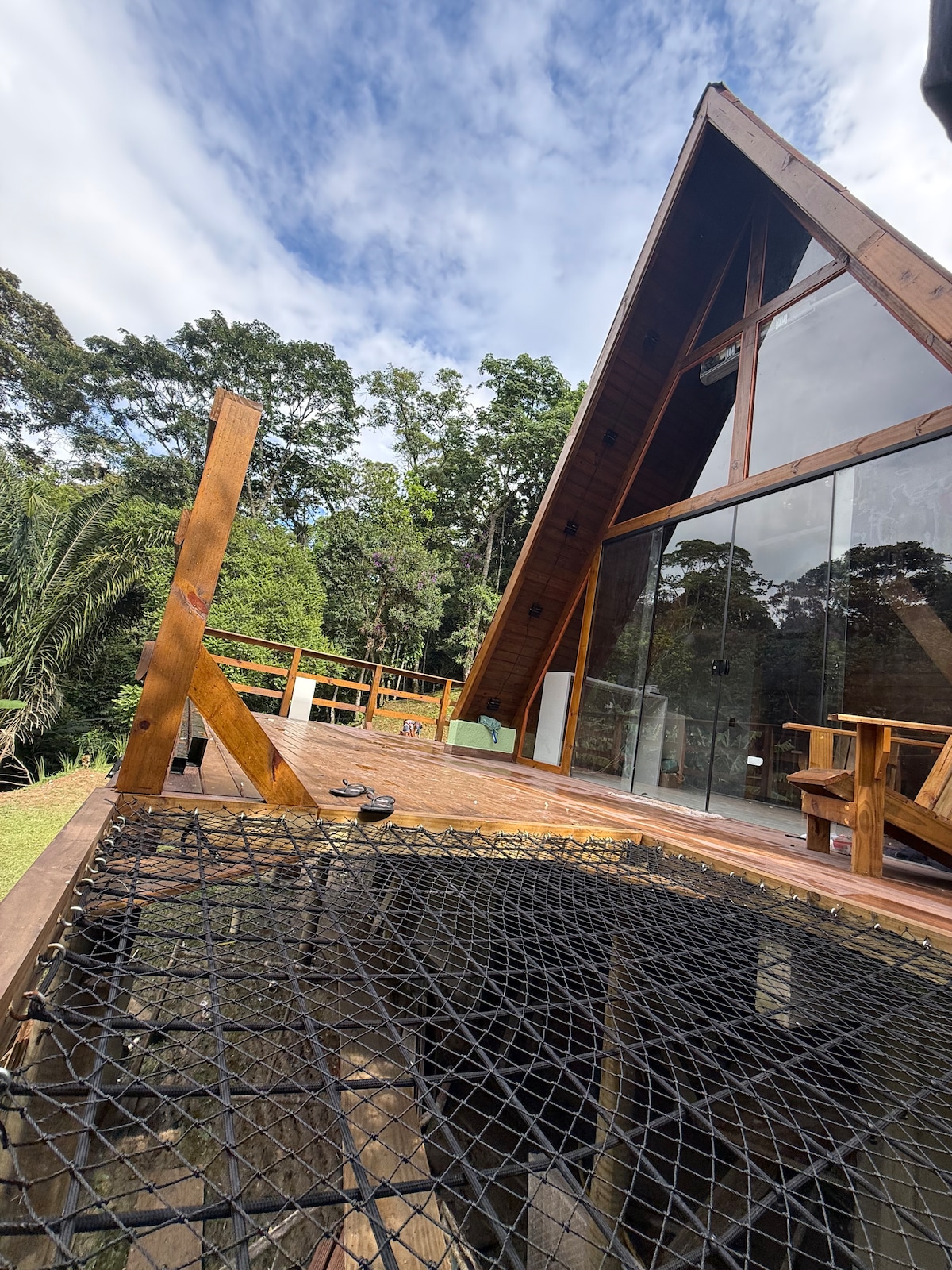 Olvídese de sus preocupaciones en este lugar espacioso y tranquilo. Hermosa cabaña de estilo A-frame en la región de Teresópolis -Rj, con mucho espacio para disfrutar, tenemos chimenea exterior, chimenea interior, pérgola para descansar y disfrutar de las montañas alrededor de la cabaña, tenemos piscina y jacuzzi, cocina completa para su comodidad.