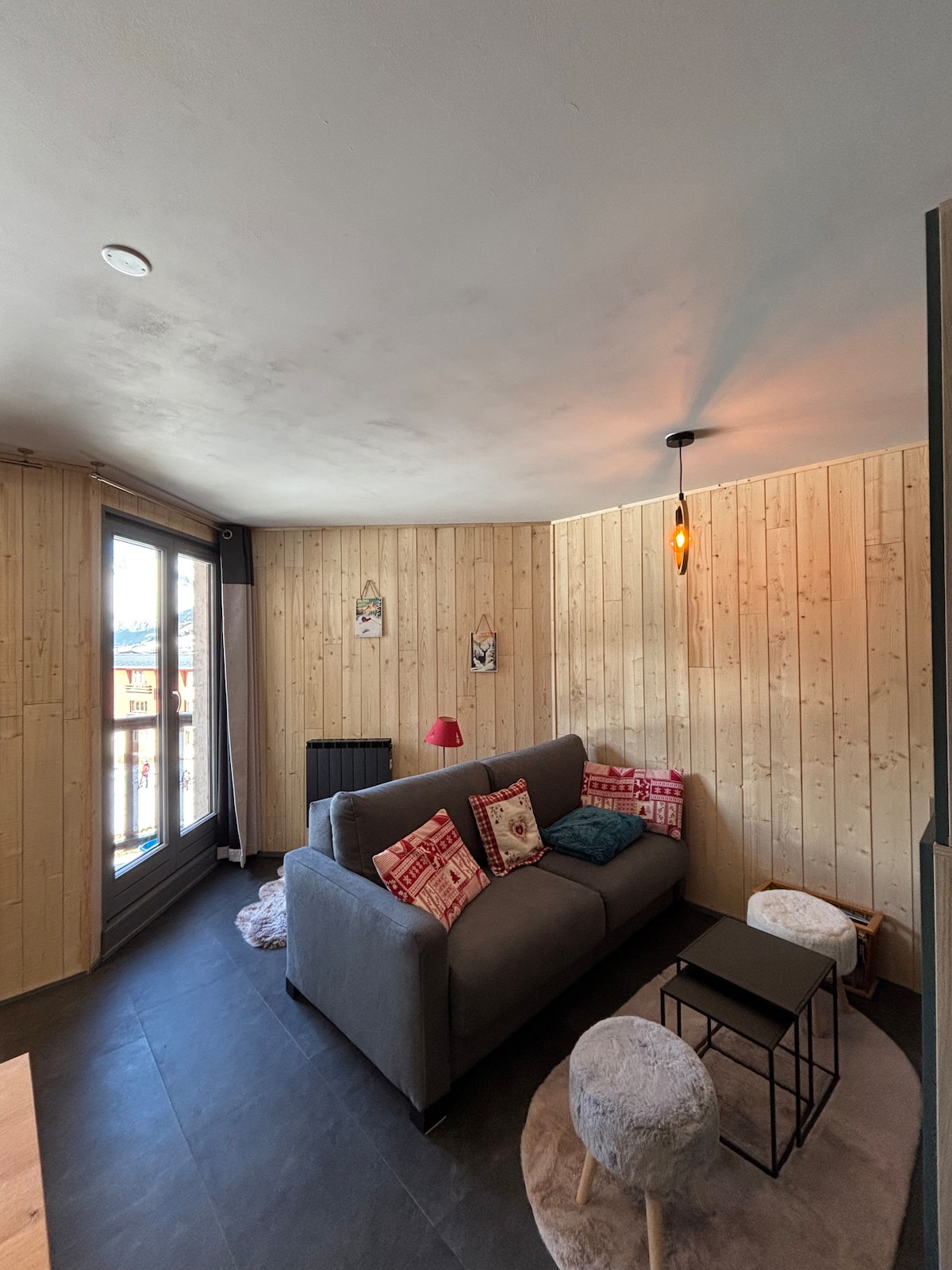 Estudio cabaña reformado de 17 m2, ideal para 2 personas, pero con capacidad para 4 personas Dispone de 4 camas, un sofá cama doble en el salón y 2 camas plegables en la entrada A 2 minutos a pie de los remontes (150 m) y cerca de todos los comercios, una parada de transporte gratuito está justo debajo de la residencia El apartamento dispone de lavavajillas, cafetera, tostadora y hervidor de agua, así como de armario para esquís Se incluyen sábanas, toallas y limpieza Wifi gratuito