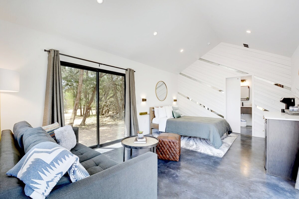 Bienvenido a Station on the Vines: La Rioja Station Unit #6, una casa contenedor de lujo de 1 dormitorio que combina el encanto de la región vinícola española con el estilo de Texas Hill Country. Relájate en las cubiertas de varios niveles bajo las estrellas, bebe vino local junto a la chimenea y date un refrescante chapuzón en la nueva piscina compartida de estilo resort. Ubicado en 20 acres pintorescos de la autopista 290, estás a minutos del centro de Fredericksburg y rodeado de las mejores bodegas, cervecerías y restaurantes.