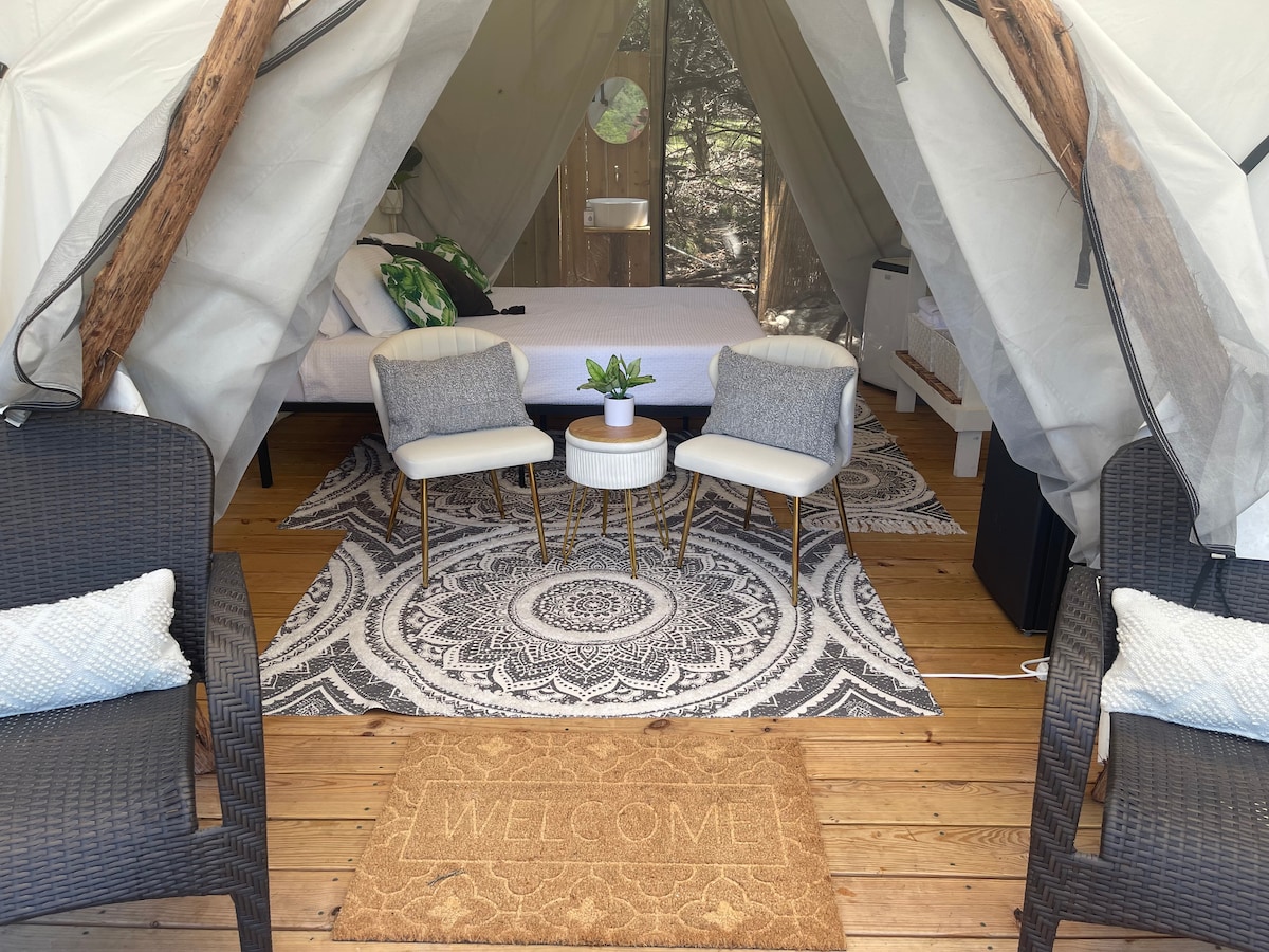 ¡Tienda de lujo en un sitio de glamping arbolado de 5 acres!