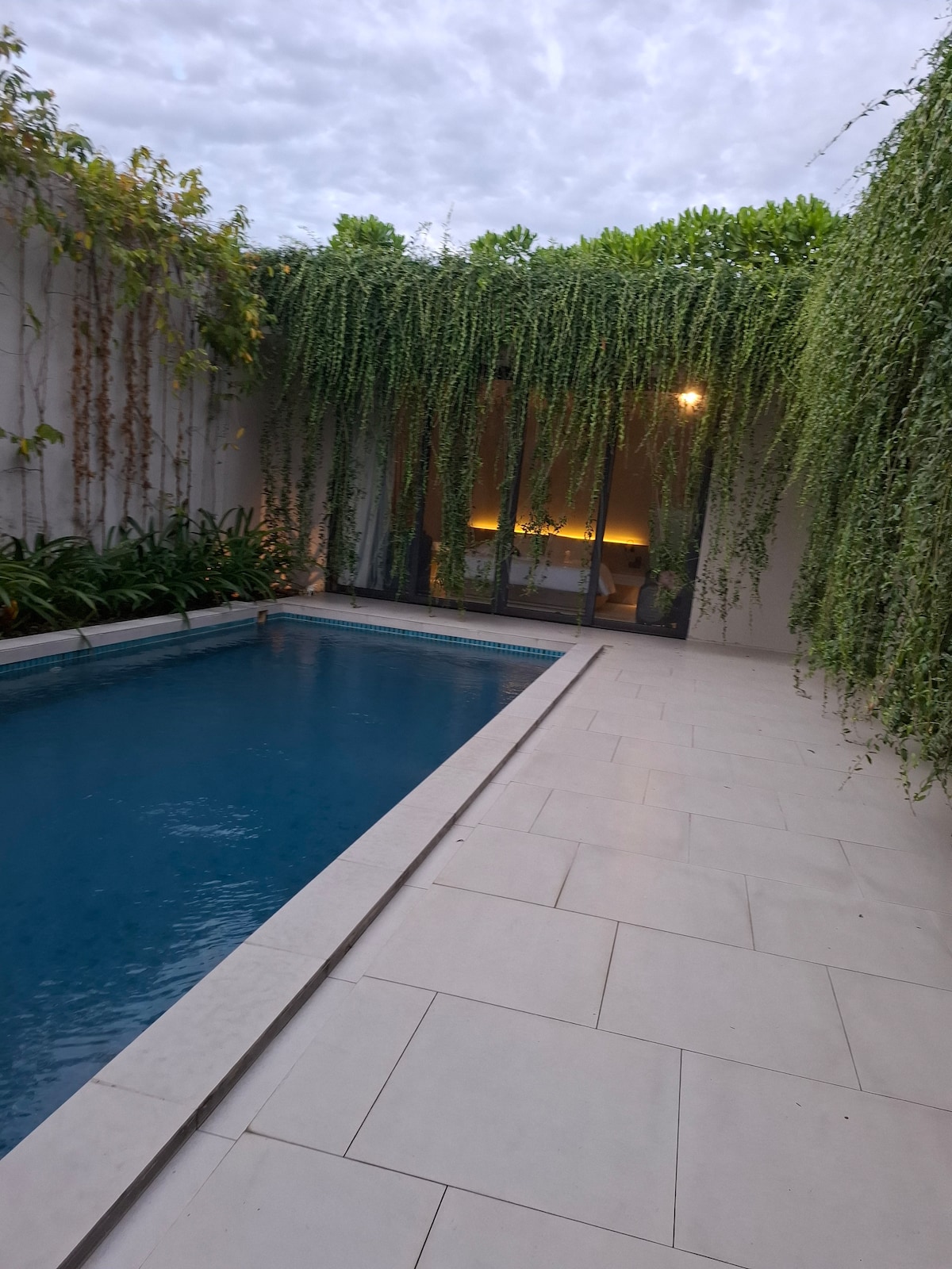 Nghỉ ngơi và thư giãn trong không gian yên bình, đầy phong cách này. villa 2 phòng hồ bơi riêng , bếp nấu ăn tiêu chuẩn 4 người lớn , villa gia đình không có dịch vụ ăn sáng cách biển khoảng 1km gần chợ chiều 150m