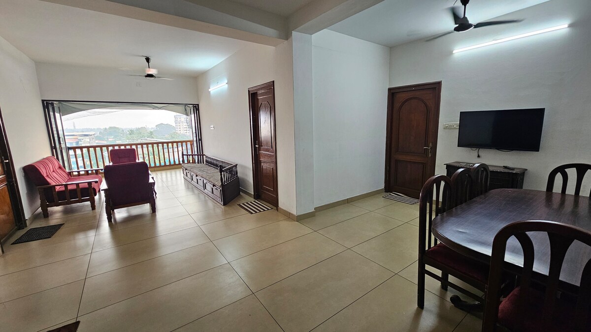 ¡Alójate en el corazón de Kozhikode en este espacioso apartamento de 2BHK! A pocos minutos de la playa de Kozhikode, SM Street y las principales atracciones, nuestra casa ofrece comodidad y conveniencia. Disfruta de una piscina, gimnasio, sala de juegos y una impresionante azotea con vistas a la ciudad. El apartamento tiene una cocina totalmente equipada, una sala de estar luminosa y WiFi de alta velocidad. Perfecto para familias, amigos o estadías de negocios.