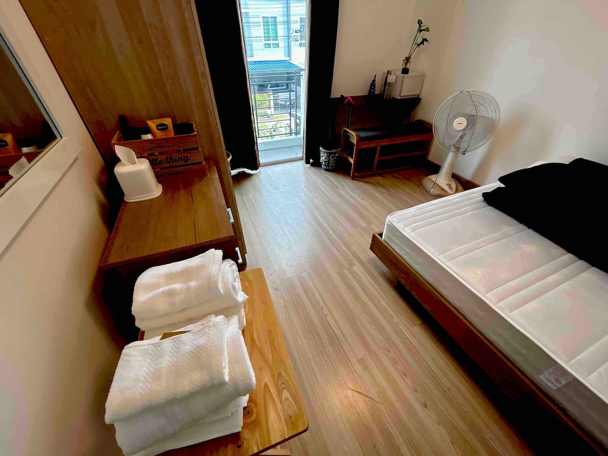 Departamento de estilo minimalista de 1 dormitorio y 1 baño con ducha. A solo 30 minutos del aeropuerto internacional de Don Muang. A solo 10 minutos del centro comercial más grande del distrito, Future Park Rangsit. Tiendas y restaurantes locales disponibles cerca por solo 1 minuto a pie. A una hora del centro de Bangkok. **no hay wifi en la habitación en este momento, lo sentimos mucho.**