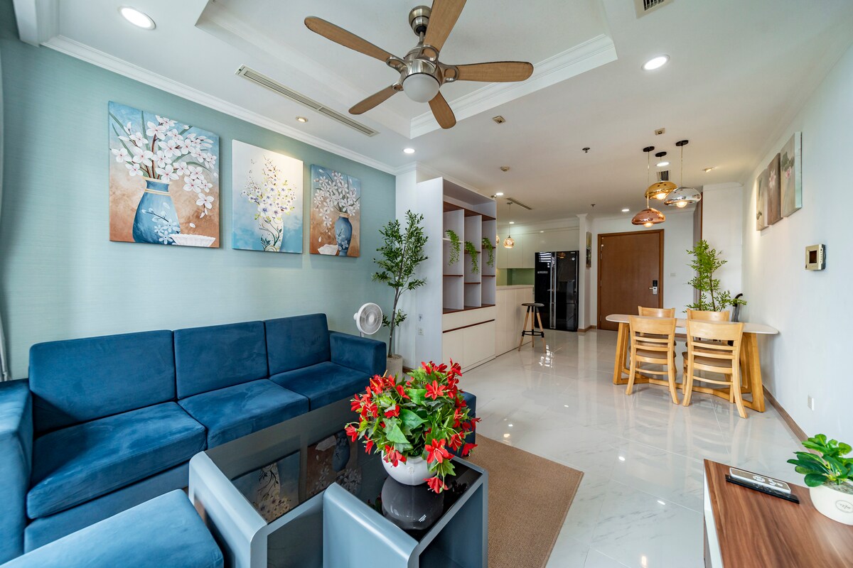 Moderno apartamento de lujo, totalmente equipado. Muebles de alta calidad, ubicado en el piso 15 del Edificio Masteri Block 2, una comunidad de clase alta conocida para extranjeros en la ciudad de Ho Chi Minh. A pocos minutos de centros comerciales, bares, cafés y restaurantes en Thao Dien. Tiene 2 dormitorios, 2 WC que se adaptan a toda una familia, grupo de amigos. Los huéspedes disfrutarán de wifi gratuito de alta velocidad, Netflix, piscina y gimnasio. Alquiler de larga duración y alquiler de coches disponibles. Personal de seguridad 24/24. Ponte en contacto con nosotros para obtener más información.