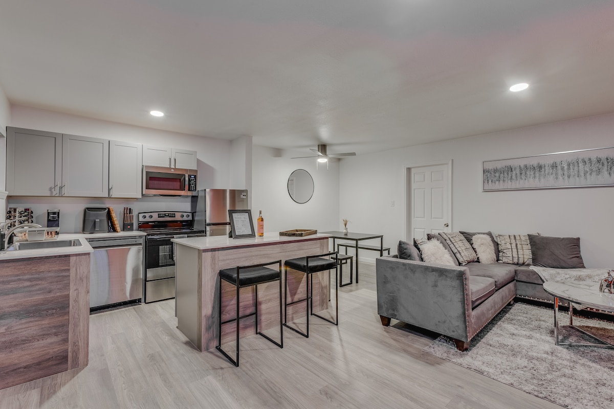 ¡Te damos la bienvenida a tu retiro en Montrose! Este loft de 2 dormitorios/1B cuenta con cómodas camas tamaño king, estacionamiento gratuito y wifi rápida. Relájate en la acogedora sala de estar con dos sofás, TV y zona de trabajo. Disfruta del patio privado o cocina en la cocina completa con una estufa de gas. Situado en el corazón de Houston, estás a pocos minutos de los mejores restaurantes, bares, museos y estadios. Ya sea que estés aquí para explorar o relajarte, ¡te encantará el espacio luminoso y acogedor!
