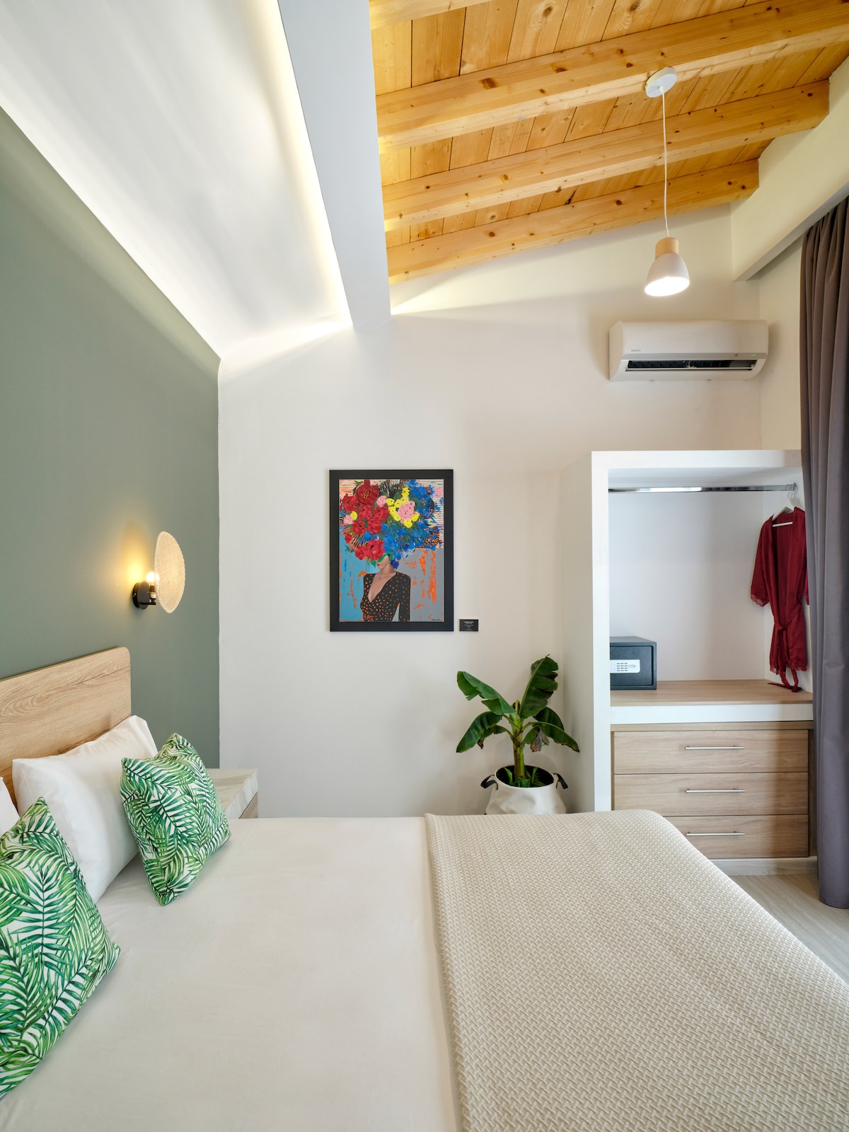 Rigani means something like “jewelry of the mountains”, also known as wild oregano and – in short – it makes everything better. Likewise, the Rigani room is full of wild beauty, enjoyment and coziness. There is the spacious balcony with hand-picked furniture and a wide view, the designer couch that invites you to lounge around or read, to the queen-size bed in which you can simply relax.
