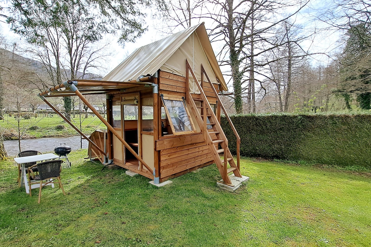 ¿No te apetece montar tu tienda? Te gusta la comodidad de una cama real mientras duermes al aire libre. ¿Está en bicicleta o a pie por el GR 400, o desea alojarse más tiempo en los montes del Cantal? Acunada por el suave ruido de la Cére que fluye al lado, descubra nuestra cabaña encaramada -Tente Bivouac XL sobre pilotes con su cocina y cocina Se accede por una pequeña escalera a su habitación, y debajo, bien protegido encontrará una mesa con dos bancos.