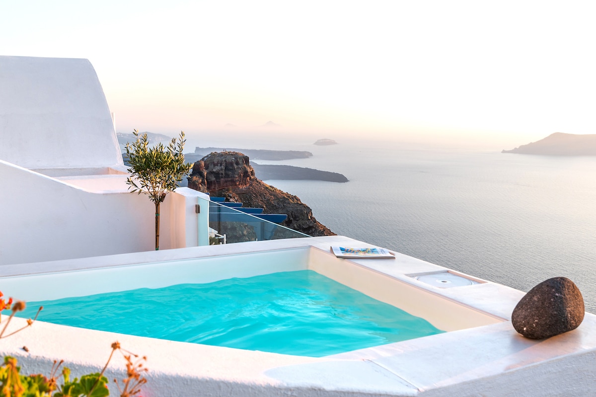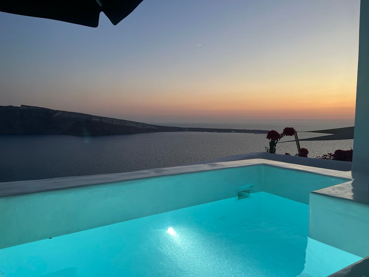 Santorini blue, caldera views, private pool