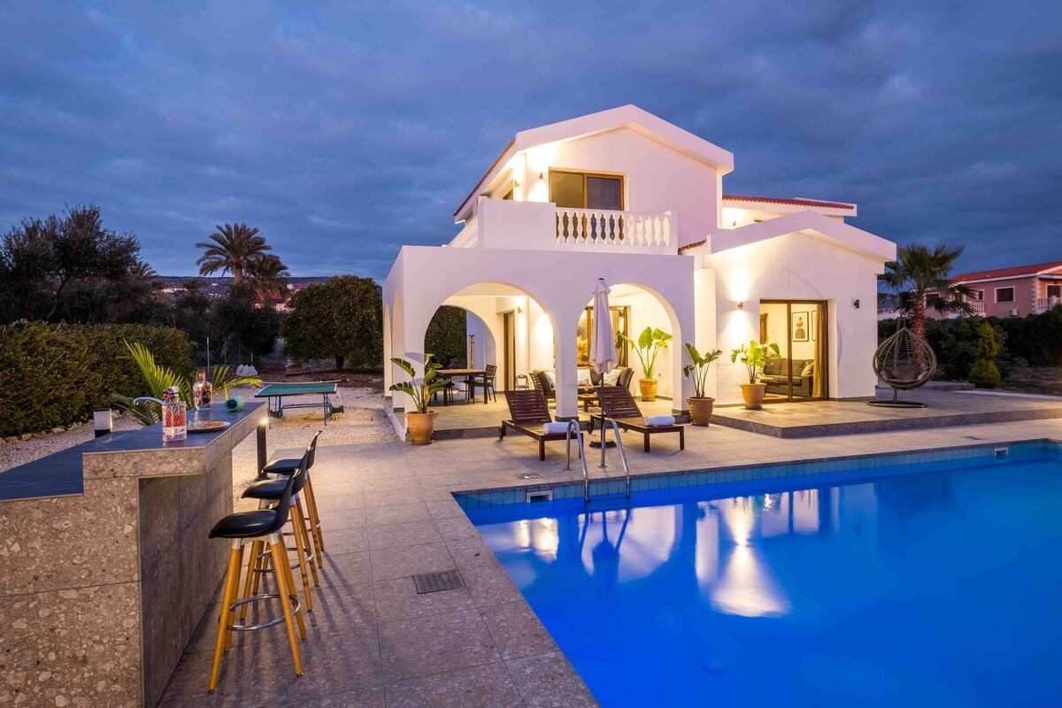 Ubicado en las colinas de Stroumpi, estarás en una posición perfecta para sumergirte en el lujo puro y la privacidad que Aiora tiene para ofrecer. Desde la llegada hasta la salida, estamos a tu disposición para garantizar que tengas una experiencia inolvidable. Sumérgete en tu propia piscina privada para nadar por la mañana. Toma la carretera a tu derecha hacia la ciudad de Pafos para acceder fácilmente a restaurantes y bares. ¡Toma el camino a tu izquierda hacia Polis para nadar en aguas cristalinas o explorar los pueblos de los alrededores!