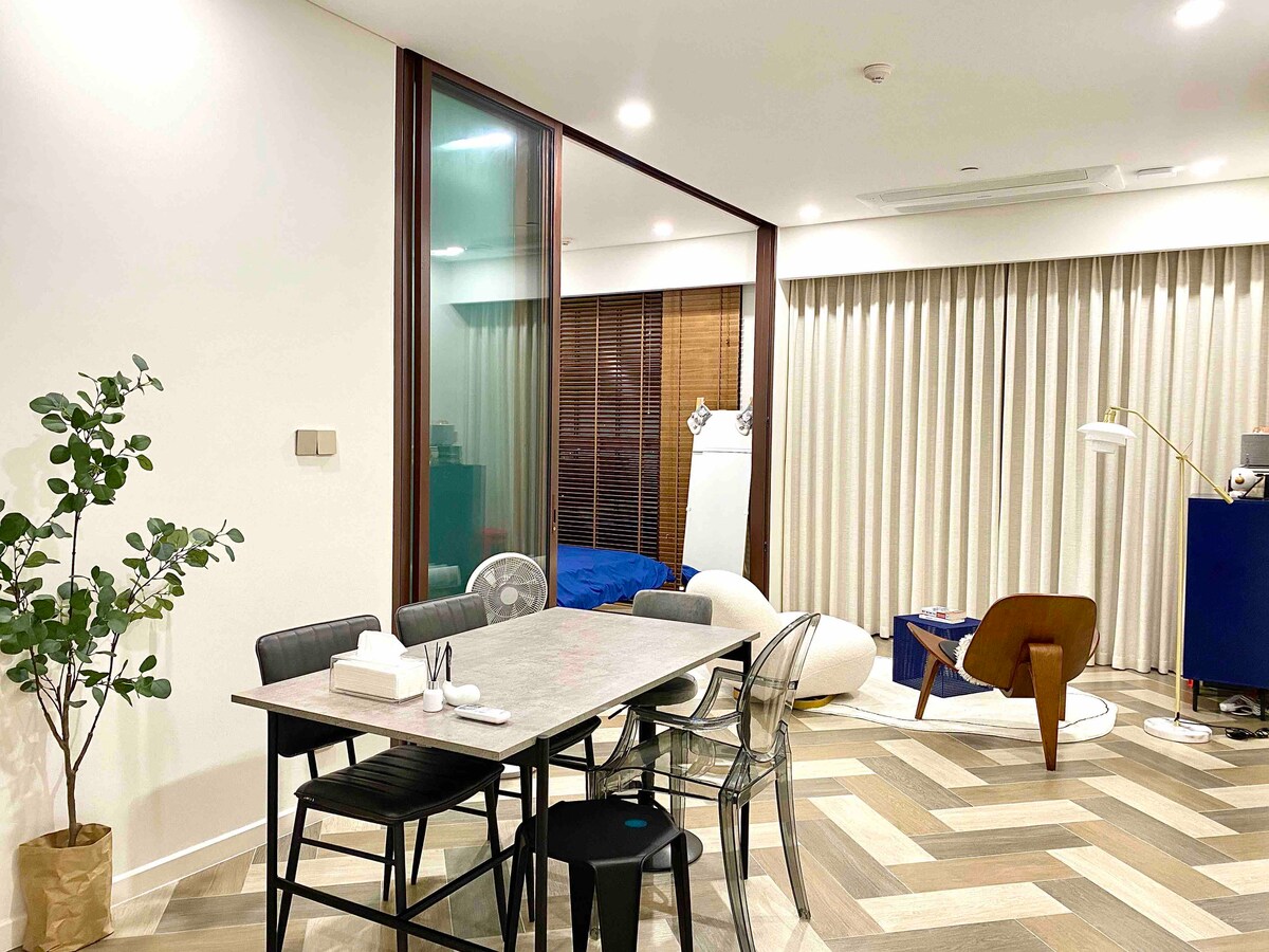 El departamento de 57 m2 está totalmente equipado con comodidades adecuadas para parejas e individuos que desean experimentar un espacio de vida moderno y lujoso con muchas instalaciones atractivas como: piscina de 50 m, relajantes aguas termales, sauna, gimnasio moderno totalmente equipado, área de barbacoa, área de juegos infantiles, piscina infantil, cancha de tenis, cine al aire libre, biblioteca cómoda y tranquila. Este espacio espacioso y tranquilo te hará olvidar las preocupaciones de la vida.