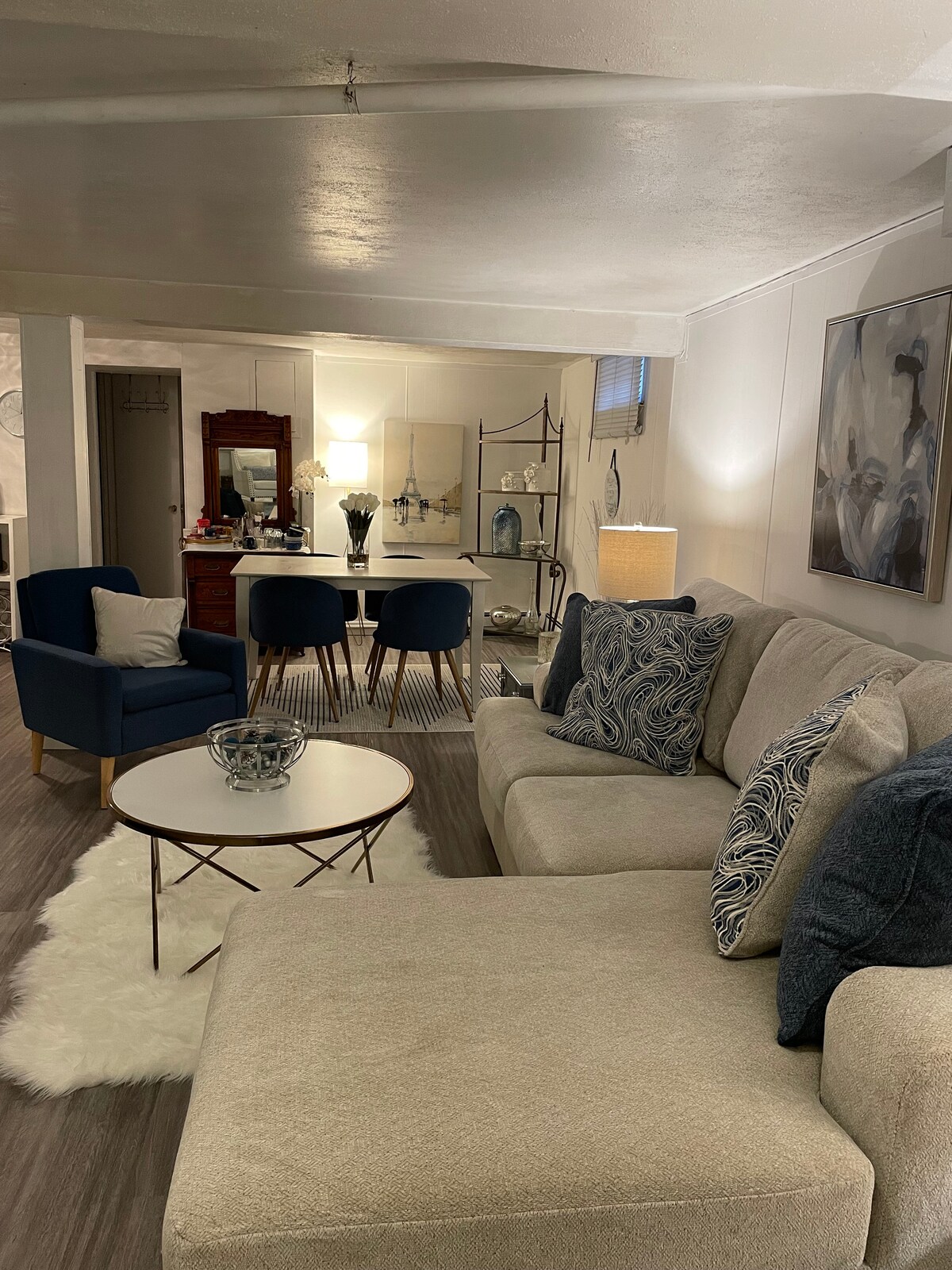 ¡Te damos la bienvenida ! Hermoso, recién amueblado en nuestro nivel inferior. ¡Hay un dormitorio privado,con almohadas de espuma viscoelástica! ¡Una cama individual en el espacio principal! ¡Todas las camas tienen sábanas de algodón 100%! Equipado con un keurig, hervidor, microondas, tostadora y nevera bar. Café y té , mate de café y azúcar, vasos, tazas y platos de café, tazones, cubiertos y servilletas. ¡Aparcamiento gratuito en la calle! Televisión con cable... ¡A 9 minutos del aeropuerto! El documento de identificación con fotografía puede solicitarse en el momento del registro... ¡Se incluye el 5 % de impuesto municipal sobre el alojamiento!